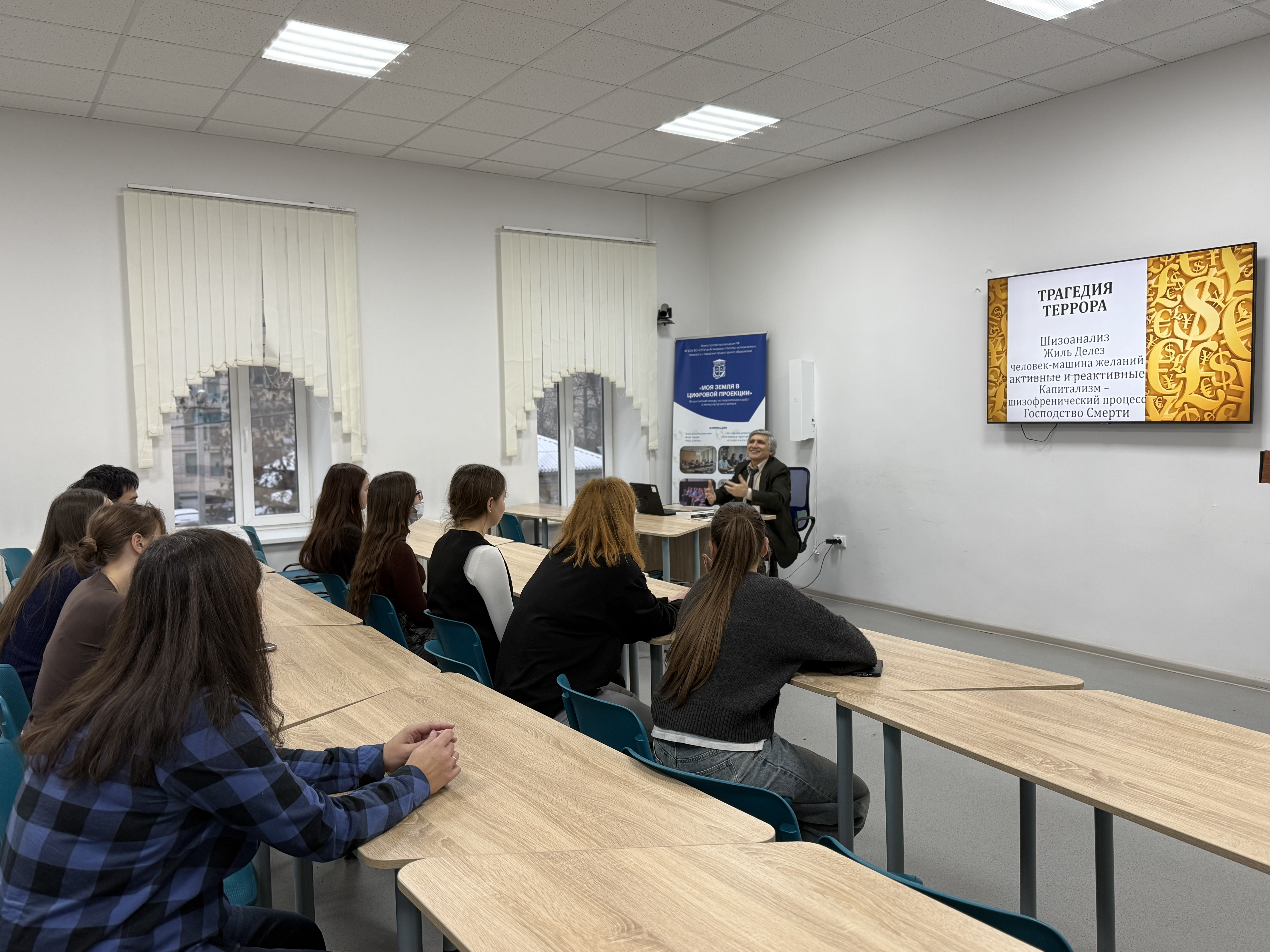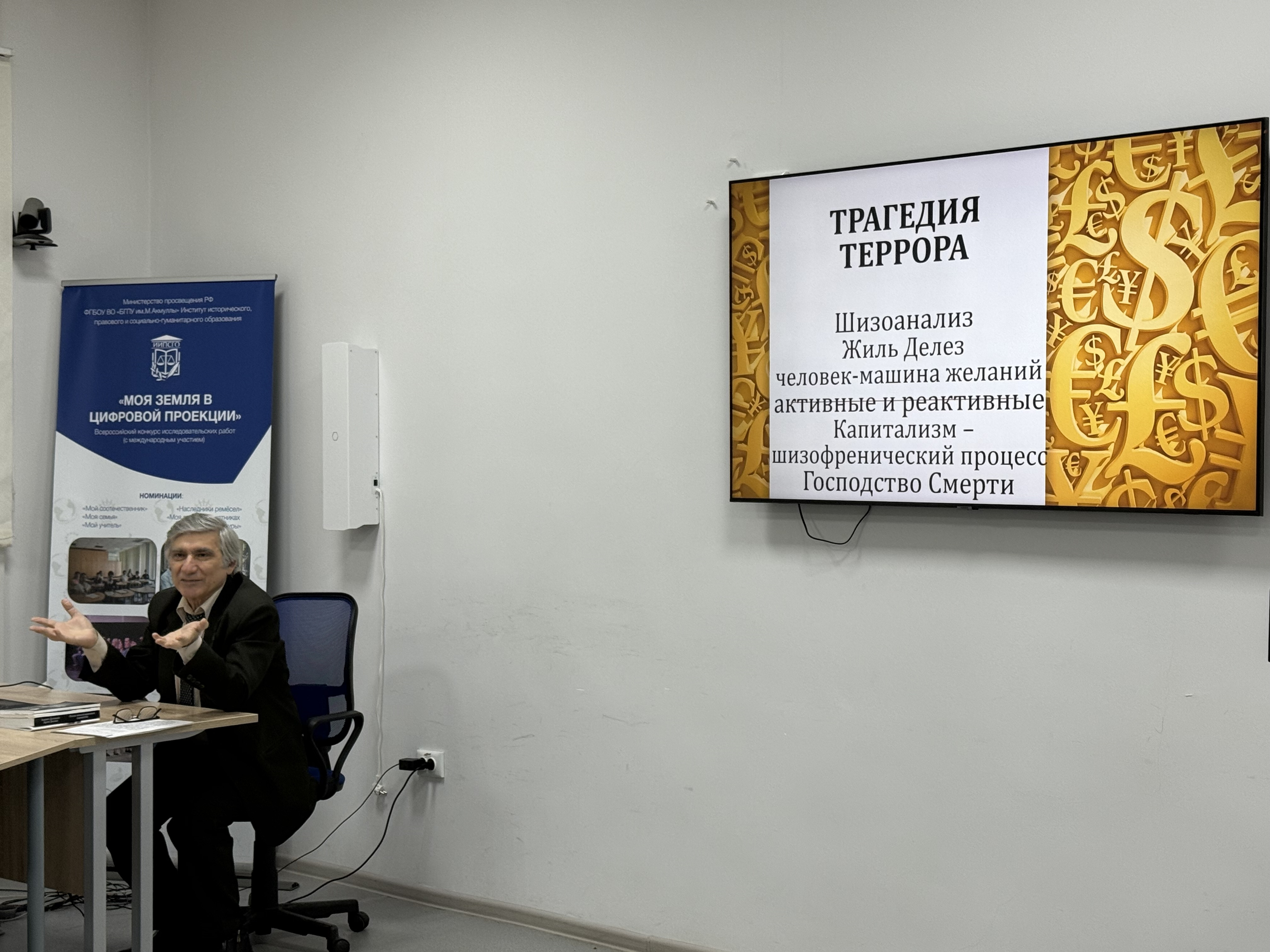 С 2024 года по всей России проходят мероприятия проекта «Наука рядом». Это серия популярных лекций, проводимых ведущими российскими учёными и исследователями, нацеленная на популяризацию науки и привлечение интереса широкой аудитории к современным открытиям и достижениям в различных областях знаний. В рамках данного проекта 4 декабря 2025 г. в Акмуллинском университете на базе Института исторического, правового и социально-гуманитарного образования прошла лекция д.филос.н., профессора Карлена Ашотовича Даллакяна «Трагедия террора». Участники лекции узнали разницу в терминологии «силы» и «насилия», «террора» и «терроризма»; получили знания о стратегии и тактике управления страхом человека. Личность террориста была рассмотрена на примерах из произведений философов Жиля Делёза, Альбера Камю, Зигмунда Фрейда, Эриха Фромма. Особый интерес у участников вызвало обсуждение манипулятивных технологий (в виде искажения информации, газлайтинга, психологического давления, эксплуатации личных качеств) и методов противодействия манипуляций. Основным выводом лекции стал тезис: «Трагедия террора заключается в том, что он приводит всегда к самоуничтожению».