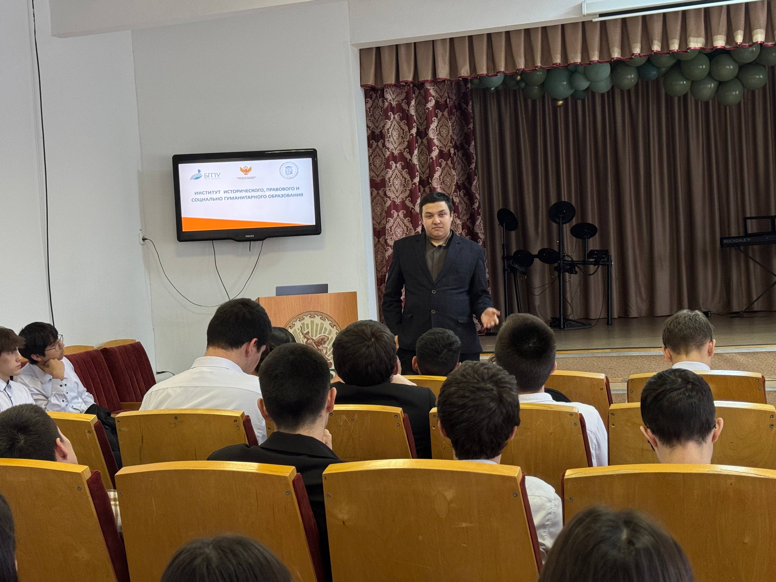 3 – 5 декабря в рамках прохождения педагогической практики студенты группы ПОИС_ОБЩ-51-21 Института исторического, правового и социально-гуманитарного образования Башкирского государственного педагогического университета им. М. Акмуллы проводят серию профориентационных мероприятий для учащихся общеобразовательных школ. Алсу Феткулова выступила перед учащимися 10-х классов Республиканского инженерного лицея-интернета (ГБОУ РИЛИ). Алсу подробно рассказала о жизни вуза, сделав акцент на возможностях, доступных студентам с первого курса. Старшеклассники познакомились с основными направлениями подготовки. Особое внимание было уделено системе олимпиад, которые не только дают шанс на льготное поступление, но и служат отличным трамплином для личностного и интеллектуального роста.