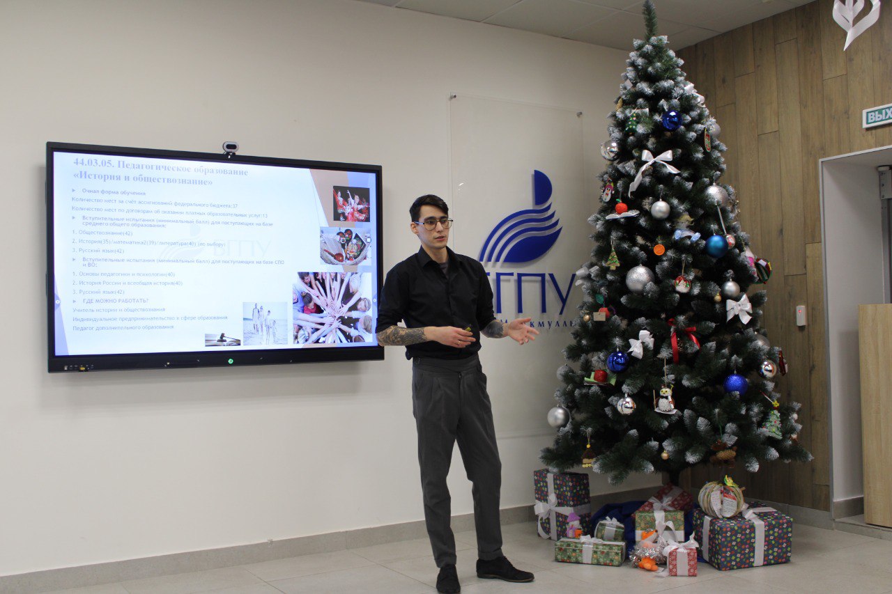 17 декабря 2025 года Преподаватель Института исторического, правового и социально-гуманитарного образования БГПУ им. М. Акмуллы Даниил Андреевич Горсков выступил перед старшеклассниками МАОУ «Аксаковская гимназия № 11» и Школы № 87 ГО г. Уфа с презентацией об образовательных возможностях института. Мероприятие было направлено на помощь в профессиональном самоопределении будущих абитуриентов.