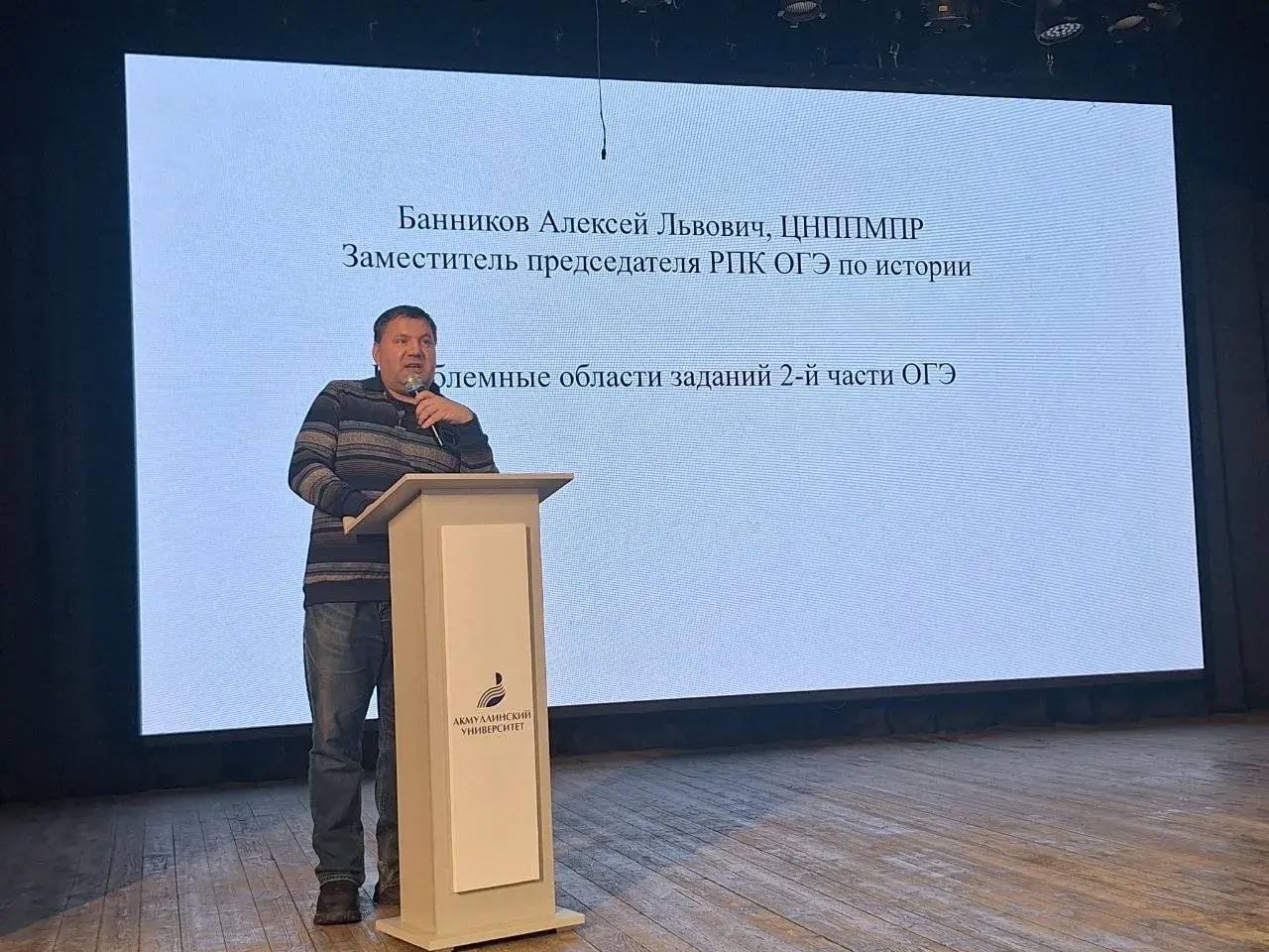 Банников Алексей Львович, заместитель председателя РПК ОГЭ по истории с темой «Подготовка школьников к ОГЭ. Проблемные области заданий второй части ОГЭ по истории»;