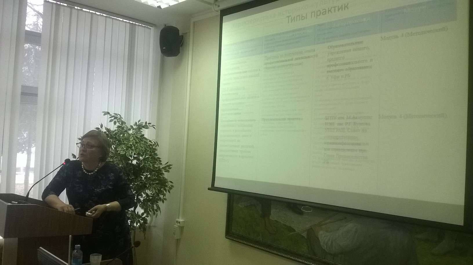 27 апреля 2018 в читальном зале корпуса № 2 БГПУ им. М.Акмуллы состоялась защита магистерских программ. Перед коллегами и потенциальными магистрантами (учителями школ республики) с обоснованием своей программы  "Религия и духовная безопасность в истории общества и государства" выступила зав. кафедрой Всеобщей истории и культурного наследия Г.Т.Обыденнова. Была показана актуальность проблематики и те возможности, которые данная программа дает магистрантам.