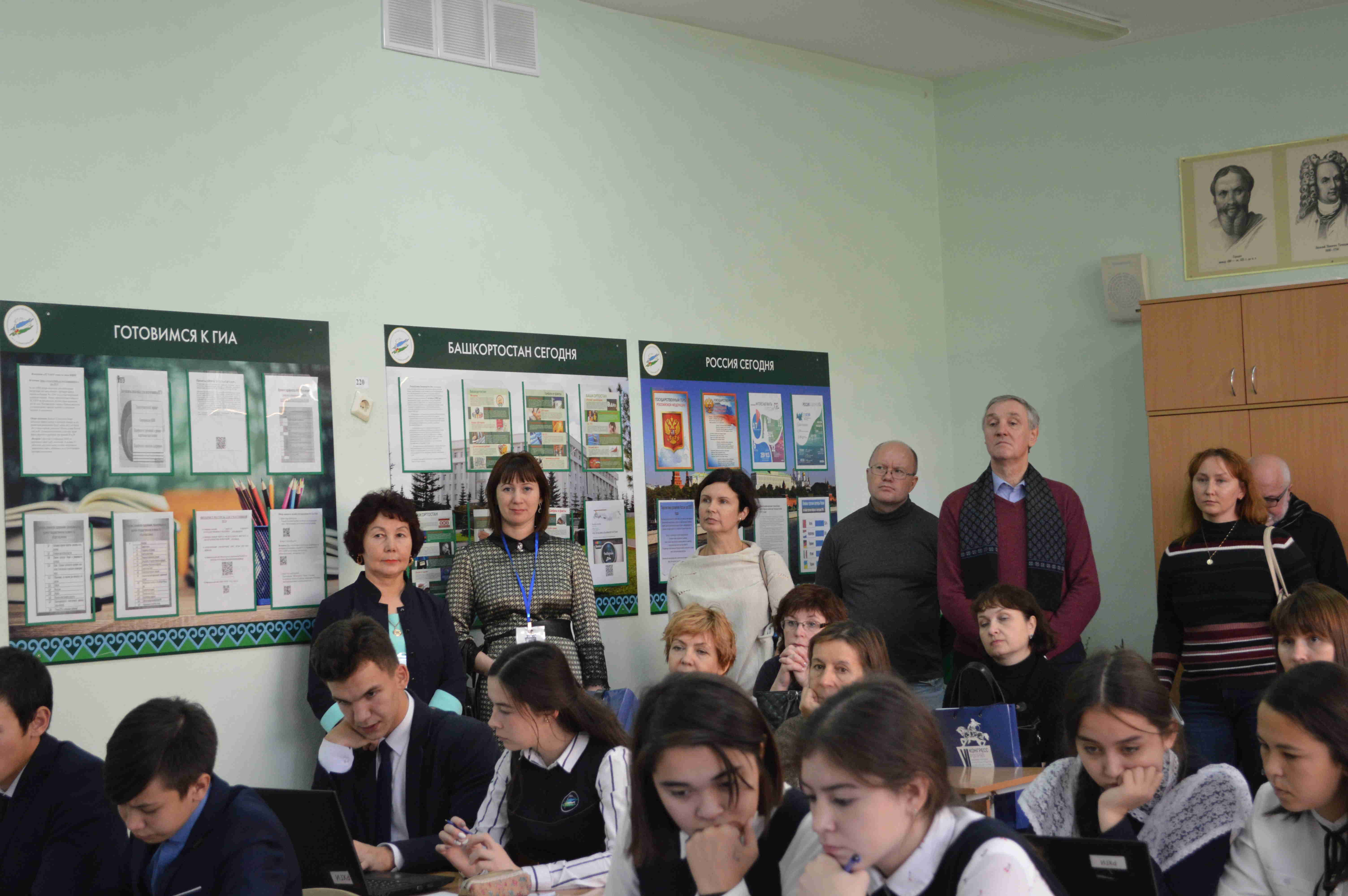 В целях ознакомления с работой преподавателей БГПУ им.М.Акмуллы в профильном социально-гуманитарном классе мастер-класс посетили участники VI Конгресса Российского общества преподавателей русского языка и литературы. В кабинете истории, именуемом «Класс БГПУ им.М.Акмуллы», гости были ознакомлены с историей создания Предуниверсария в РХГИ им.К.А. Давлеткильдеева, основными целями обучения в профильных классах и др.