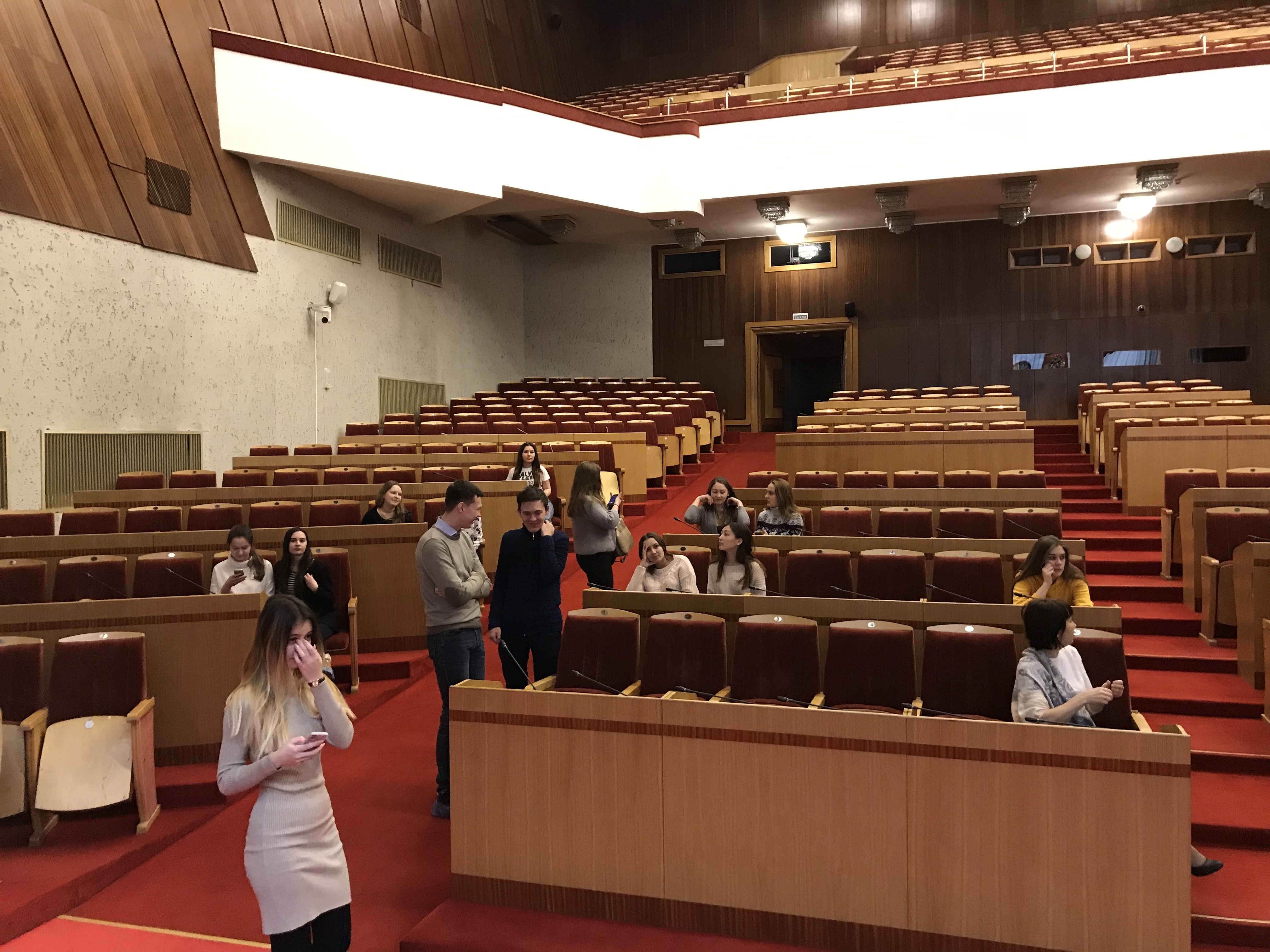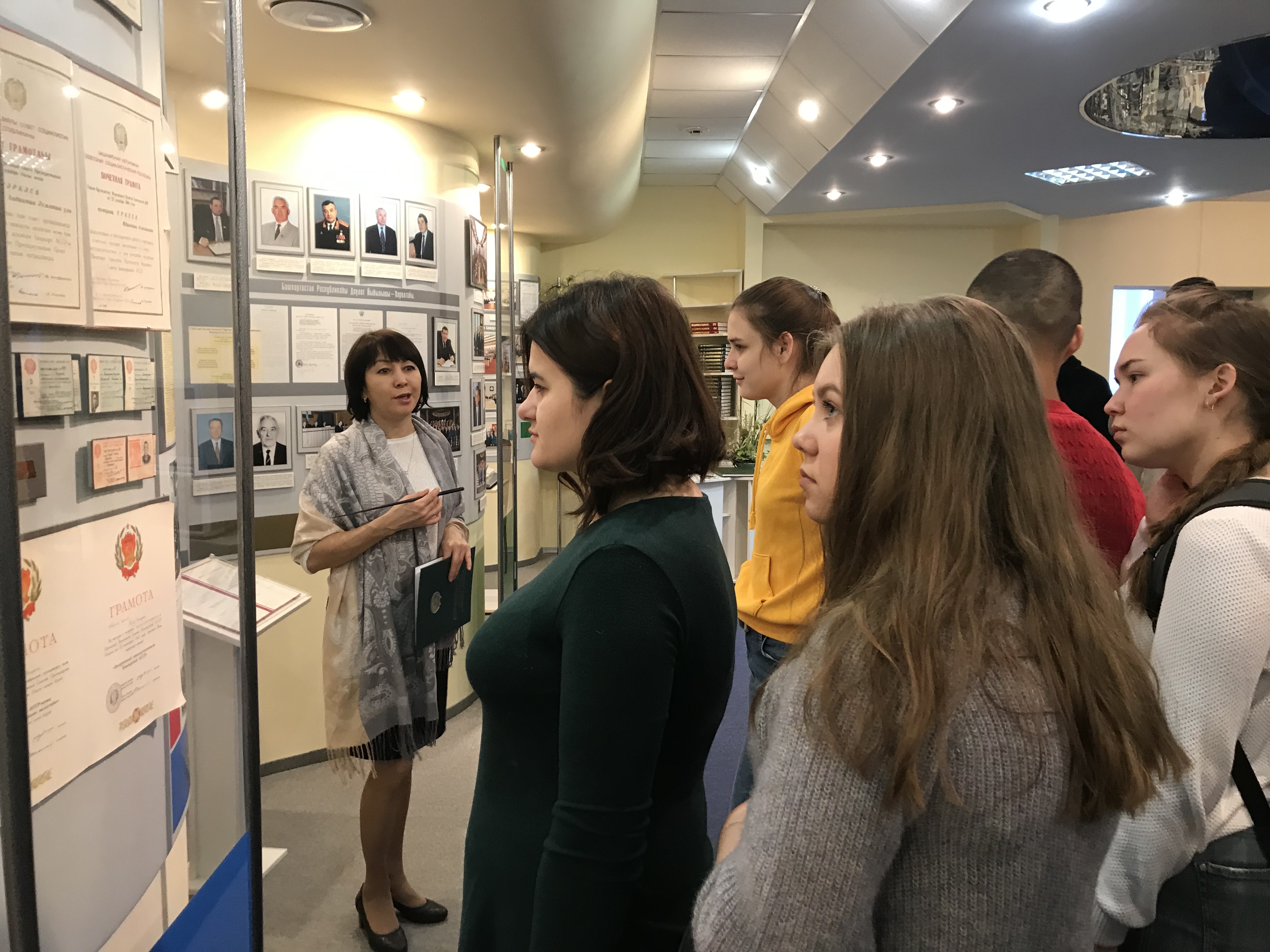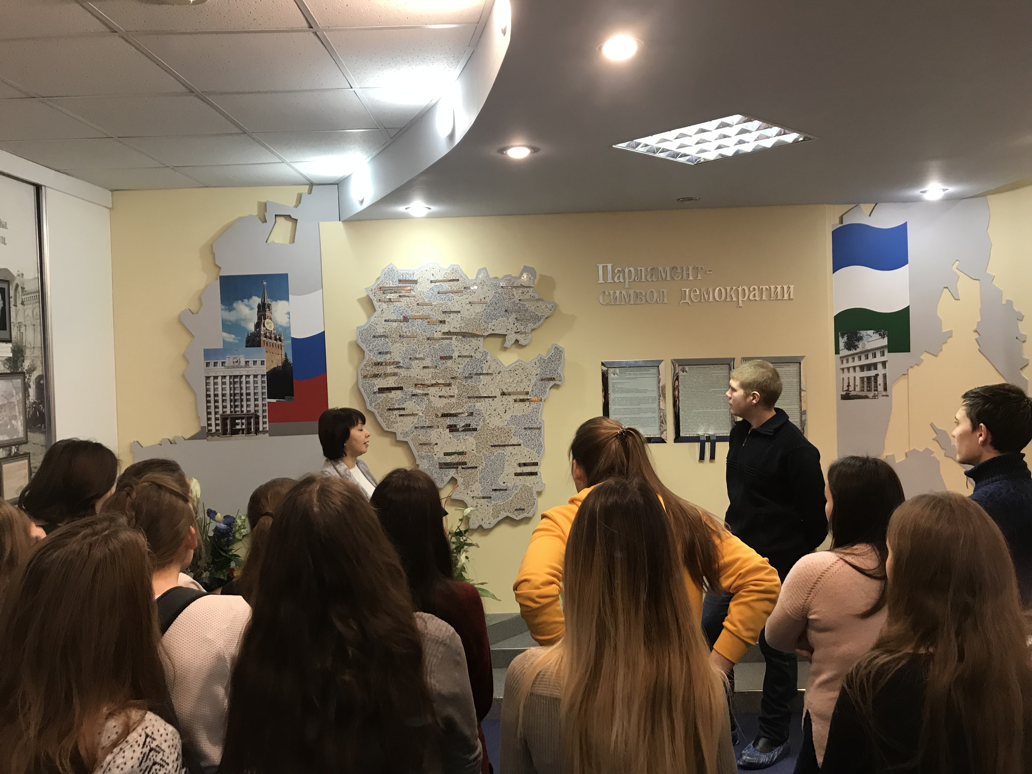 В просторном зале представлены экспонаты, отражающие столетнюю историю становления и развития парламентаризма в Башкортостане: документы, фотографии, книги, значки, публикации. У студентов была возможность побывать в зале заседаний, задать интересующие их вопросы экскурсоводу.