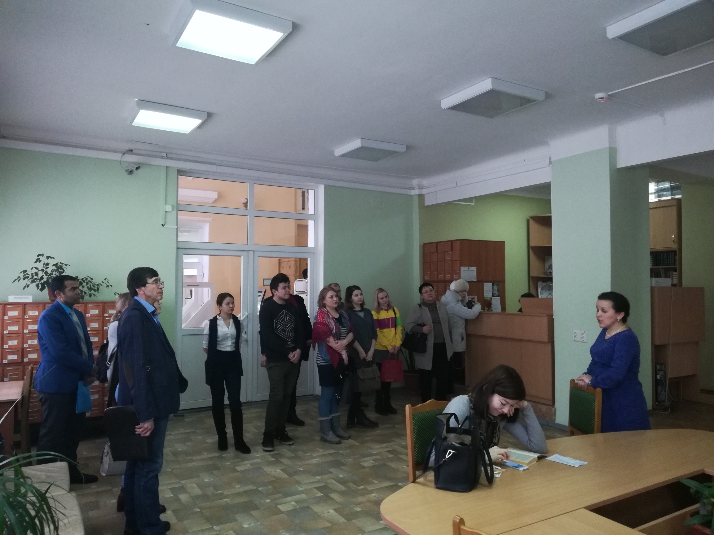 В первый день для студентов была организована экскурсия по книжным фондам библиотеки. Перед студентами стоит задача подбора материала к написанию курсовой и выпускной квалификационной работы. Они должны изучить и проанализировать исторические источники и литературу, информационные ресурсы библиотеки, продемонстрировать навыки проведения самостоятельных исследований по профилю профессиональной деятельности. Предстоит работа в отделах рукописей и редких книг, периодических изданий, краеведения.