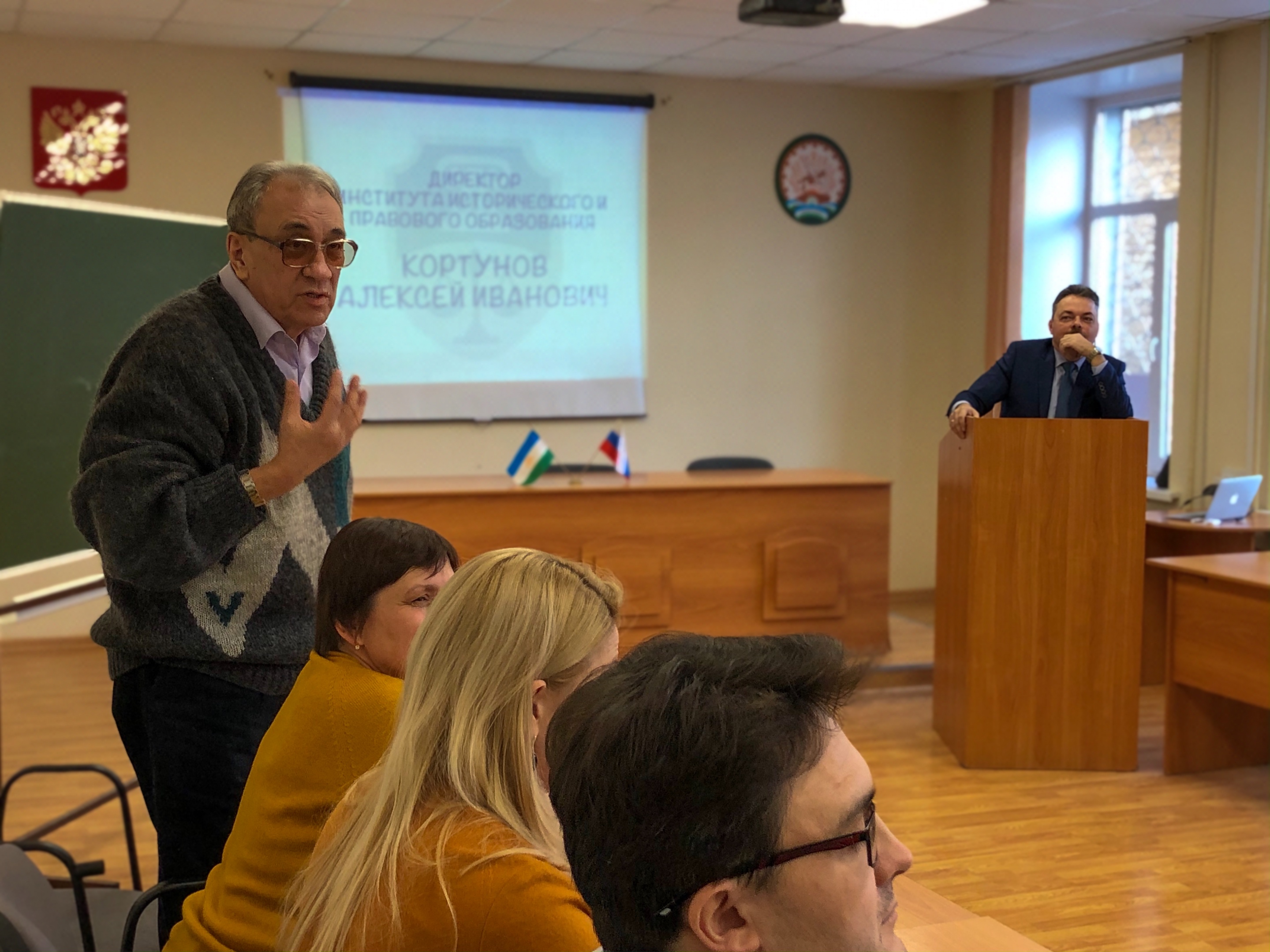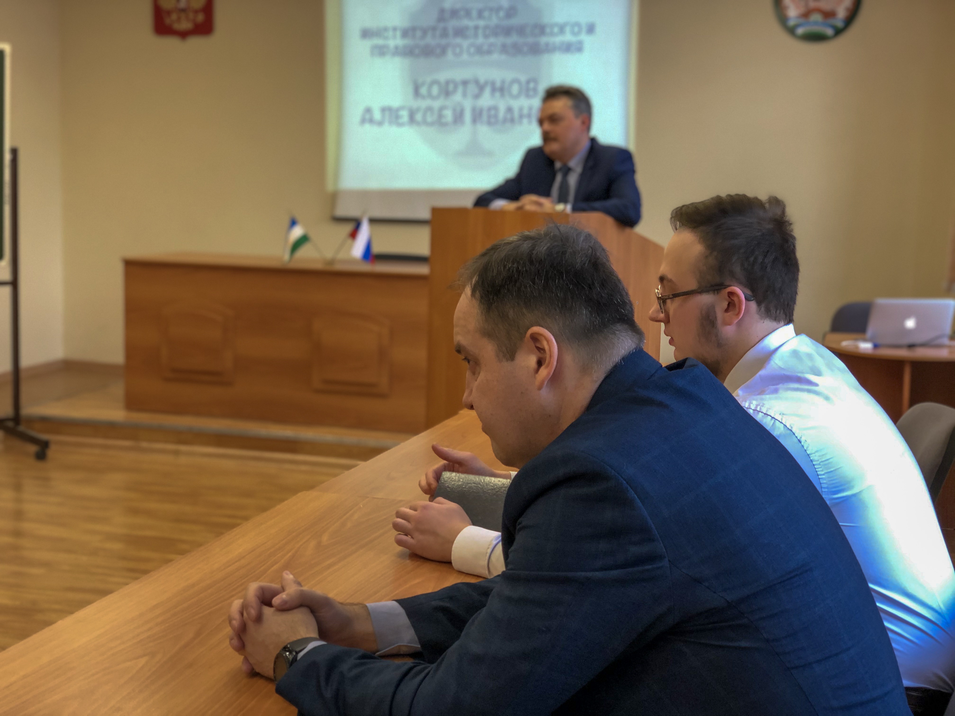 На собрании присутствовали: зам. директора по учебной работе – Хайруллина Гузель Хасановна, зам. директора по научной работе – Булычев Евгений Николаевич, зам. директора по воспитательной работе – Ахтямов Рамис Самматович, методист по учебной работе – Садретдинов Ильдар Радикович, заведующая кафедрой права и обществознания – Шамигулова Оксана Алексеевна и заведующий кафедрой Отечественной истории – Янборисов Марат Хабибович, а также представитель студенческого совета института – Баранов Роман Олегович.