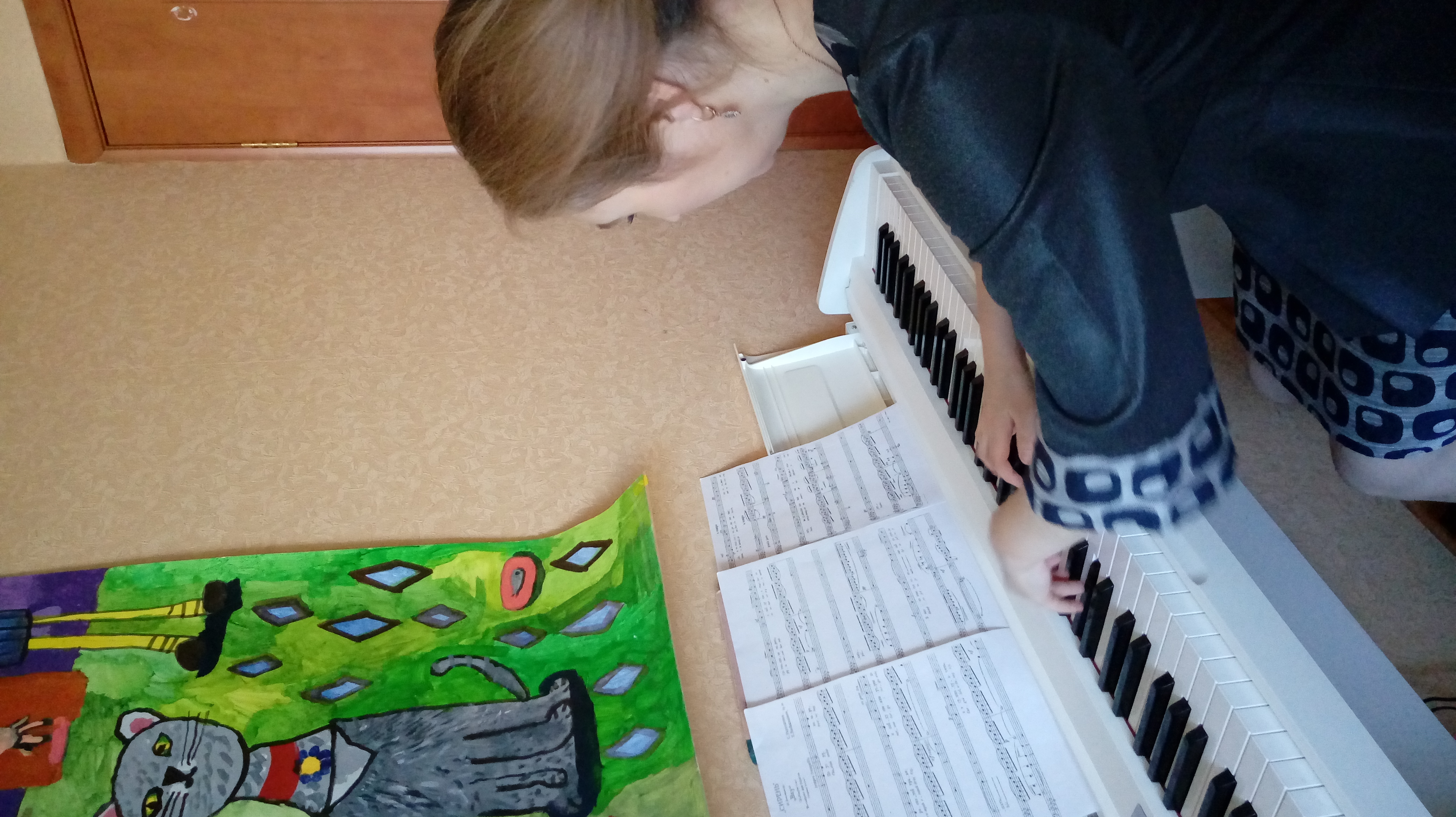 Все действия согласовываются с заданиями педагога-хормейстера и педагога-вокалиста. Для концертмейстера работа со студентами дистанционно совершенно непривычная новая форма занятий, однако, благодаря взаимодействию с коллегами, удается достичь определенного результата. Проводится работа с хоровым репертуаром. Разучиваются хоровые партитуры по голосам, с целью оказания содействия студентам при осваивании музыкального материала.