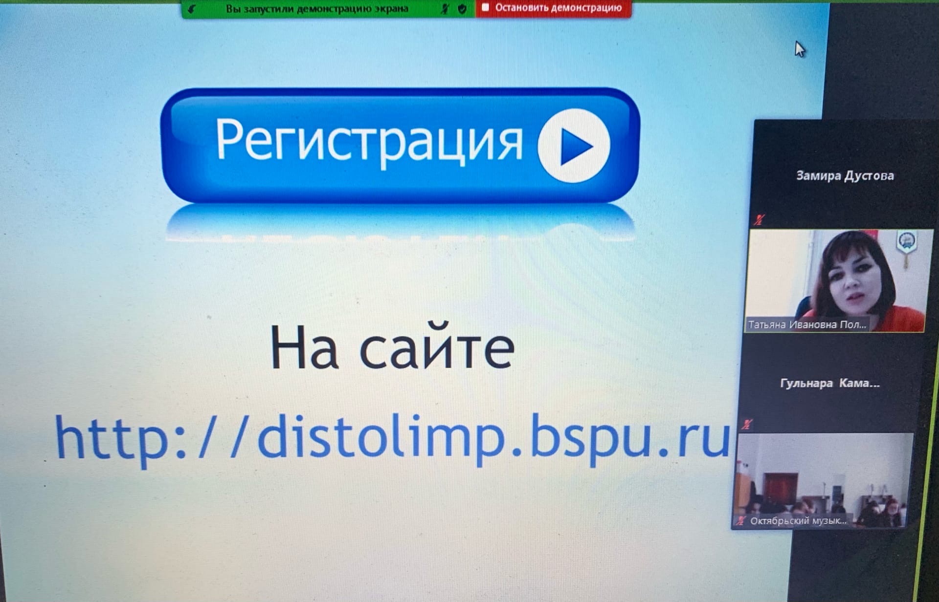 16 декабря 2020 года прошло дистанционное профориентационное мероприятие от кафедры музыкального и хореографического образования на платформе Zoom с ГБПОУ РБ «Уфимское училище искусств (колледж)», ГБПОУ РБ «Октябрьский музыкальный колледж», ГБПОУ РБ «Салаватский музыкальный колледж». В ходе мероприятия заведующей кафедрой МХО Татьяной Ивановной Политаевой была представлена информация о направлениях подготовки кафедры МХО, о вступительных испытаниях, о сроках подачи документов. А также студентам было предложено участие в Акмуллинской олипиаде по музыке и по хореографии.
