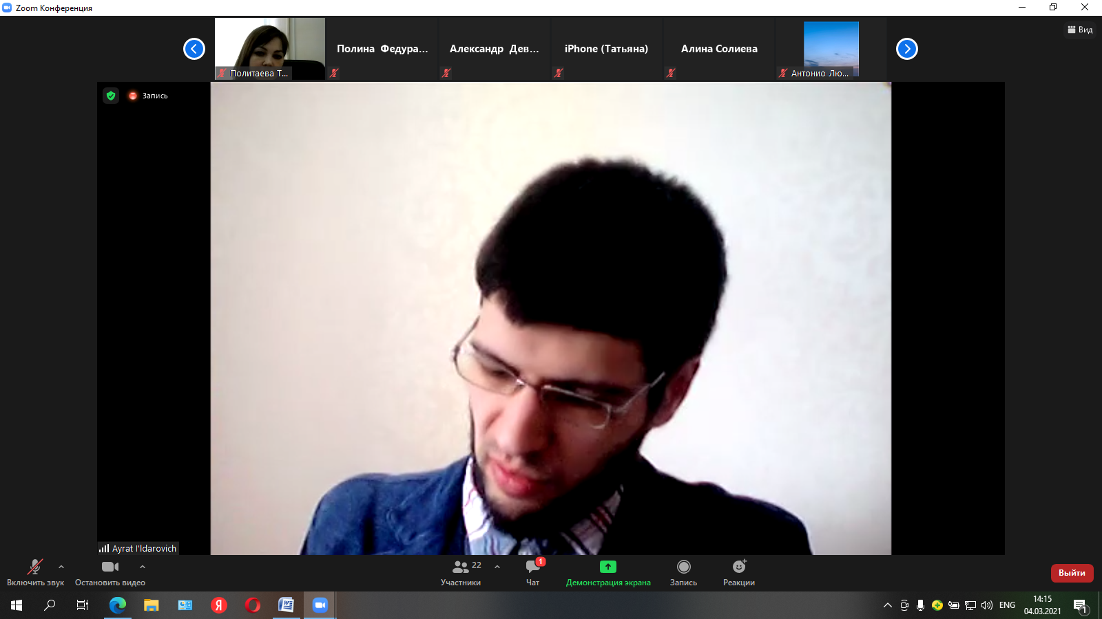 4 марта состоялась онлайн-встреча на платформе Zoom организаторов VI Международного фестиваля культур “Festive Mosaic of Cultures” с участниками фестиваля и комиссией, оценивающих представленные работы конкурсантов. В качестве членов жюри конкурса выступили преподаватели кафедры музыкального и хореографического образования. В ходе данной встречи были подведены итоги фестиваля.