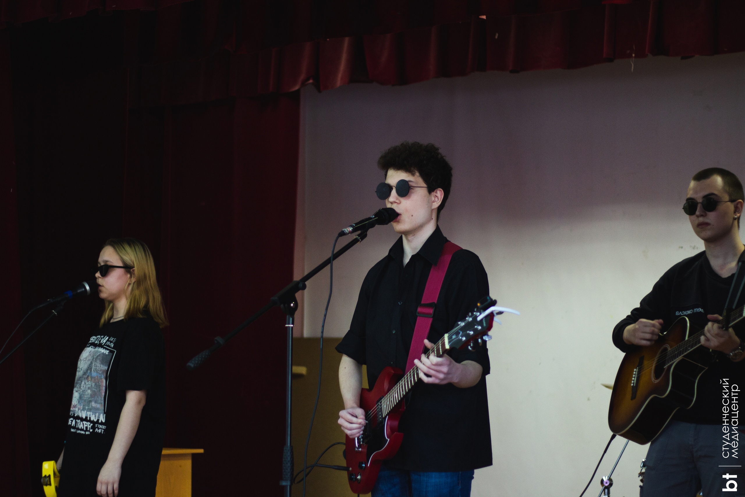 Вторая группа - "Солнцезащитные очки" (солист - Котов Павел, перкуссия, бэк-вокал - Ахмадеева Юлия). Это музыкальная инди-группа из Уфы, начавшая свой путь с самопальной андерграундной музыки и мемных песен. Ребята пробуют себя в абсолютно разных жанрах: от поп-рока до блюза, от пост-панка до рок-н-ролла. Этой зимой у Линз вышел первый сингл под названием "Cameraman", который сразу же набрал более двухсот прослушиваний на различных стриминговых площадках. Также ребята успели заявить о себе на родной уфимской сцене, успешно пройдя прослушивание для проекта "Uram Music". В планах у группы записать свой первый полноформатный альбом и выступать со своими хитами на больших площадках.