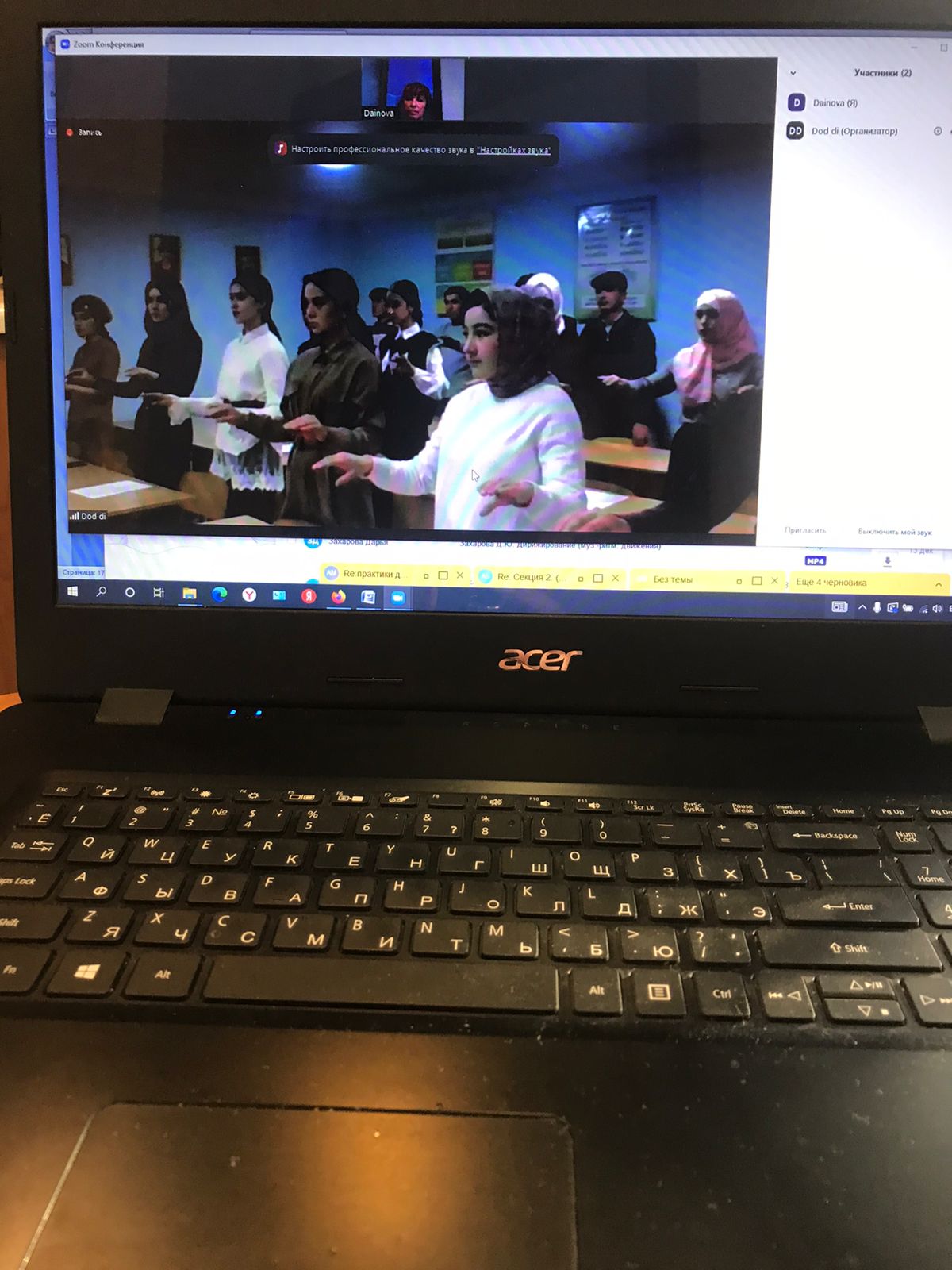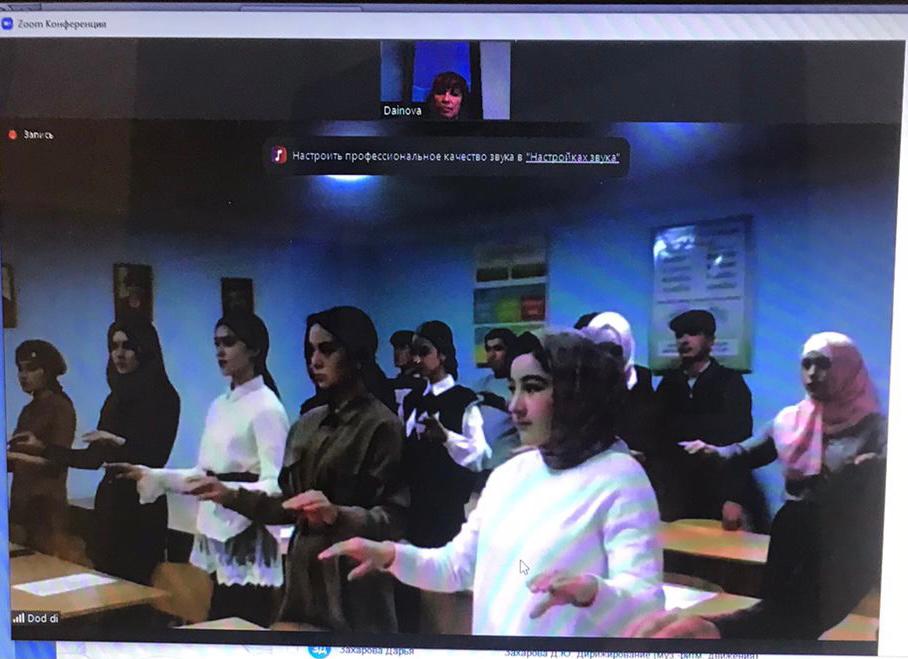 15 декабря 2021 года в рамках международного сотрудничества кафедры музыкального и хореографического образования БГПУ им. М. Акмуллы и проведения профориентационной работы доцент кафедры, кандидат педагогических наук Гузель Закуановна Дайновва провела занятие по дисциплине "Дирижирование" со студентами Кокандского государственного педагогического университета им. Мукимий (Узбекистан).