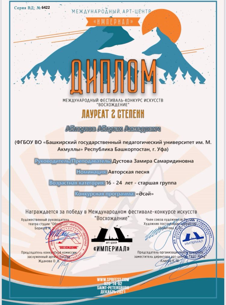 • Айткулов Айтуган - Лауреат II степени.