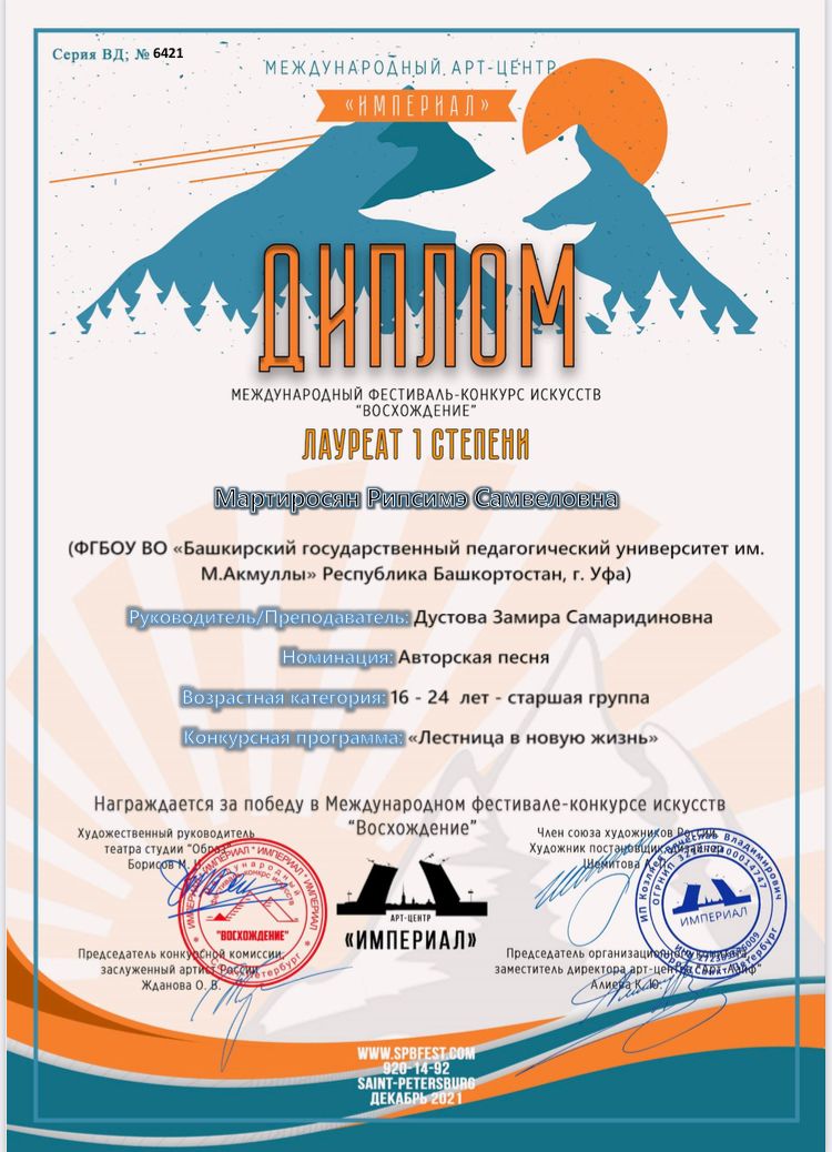 • Мартиросян Рипсимэ - Лауреат I степени;