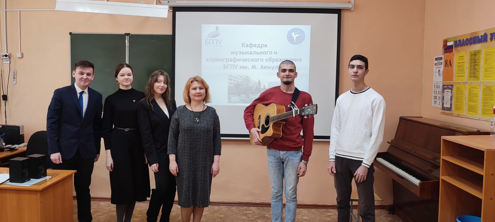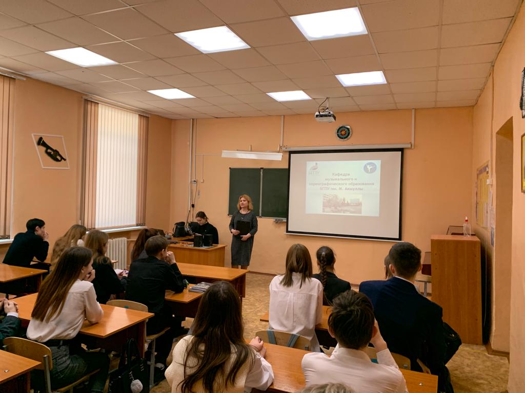 29 января 2022 года в рамках программы образовательно-просветительского проекта прошла встреча - профориентационное мероприятие от кафедры музыкального и хореографического образования на базе МБОУ «Центр образования № 76» ГО г. Уфа. В ходе мероприятия доцент кафедры МХО, к.п.н. Заббарова Маргарита Магнавиевна представила информацию о направлениях подготовки кафедры, об условиях поступления, о вступительных испытаниях требованиях по ним, о сроках подачи документов. В конце мероприятия слушателей порадовали яркими концертными номерами студенты кафедры.