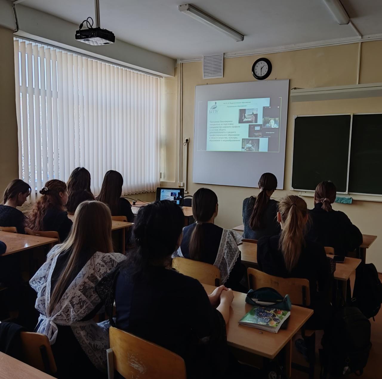 3 февраля 2022 года в рамках программы образовательно-просветительского проекта прошла встреча - профориентационное мероприятие от кафедры музыкального и хореографического образования на базе МАОУ  «Школа № 38» ГО г. Уфа. В ходе мероприятия старший преподаватель кафедры МХО Камалиева Гульнара Раильевна представила информацию о направлениях подготовки кафедры, об условиях поступления, о вступительных испытаниях требованиях по ним, о сроках подачи документов.