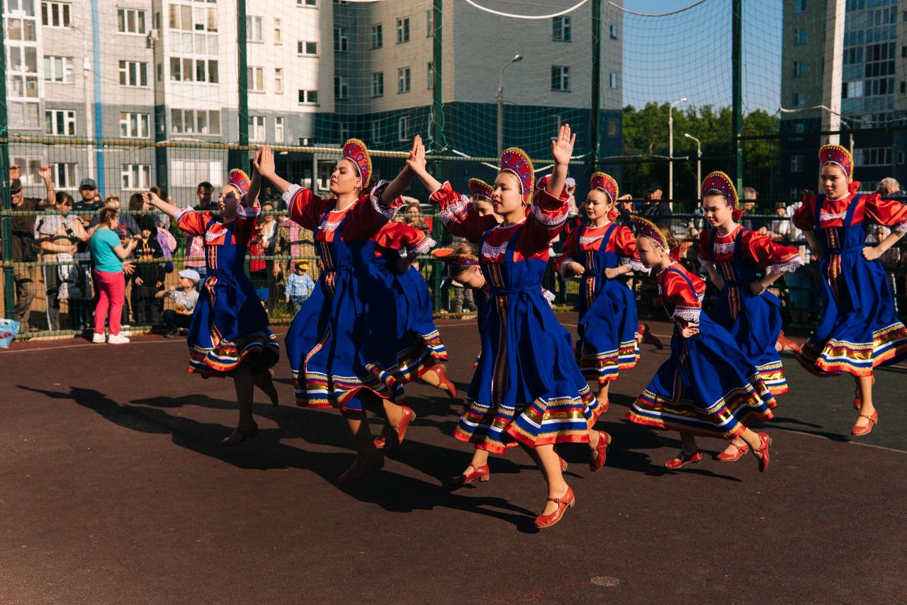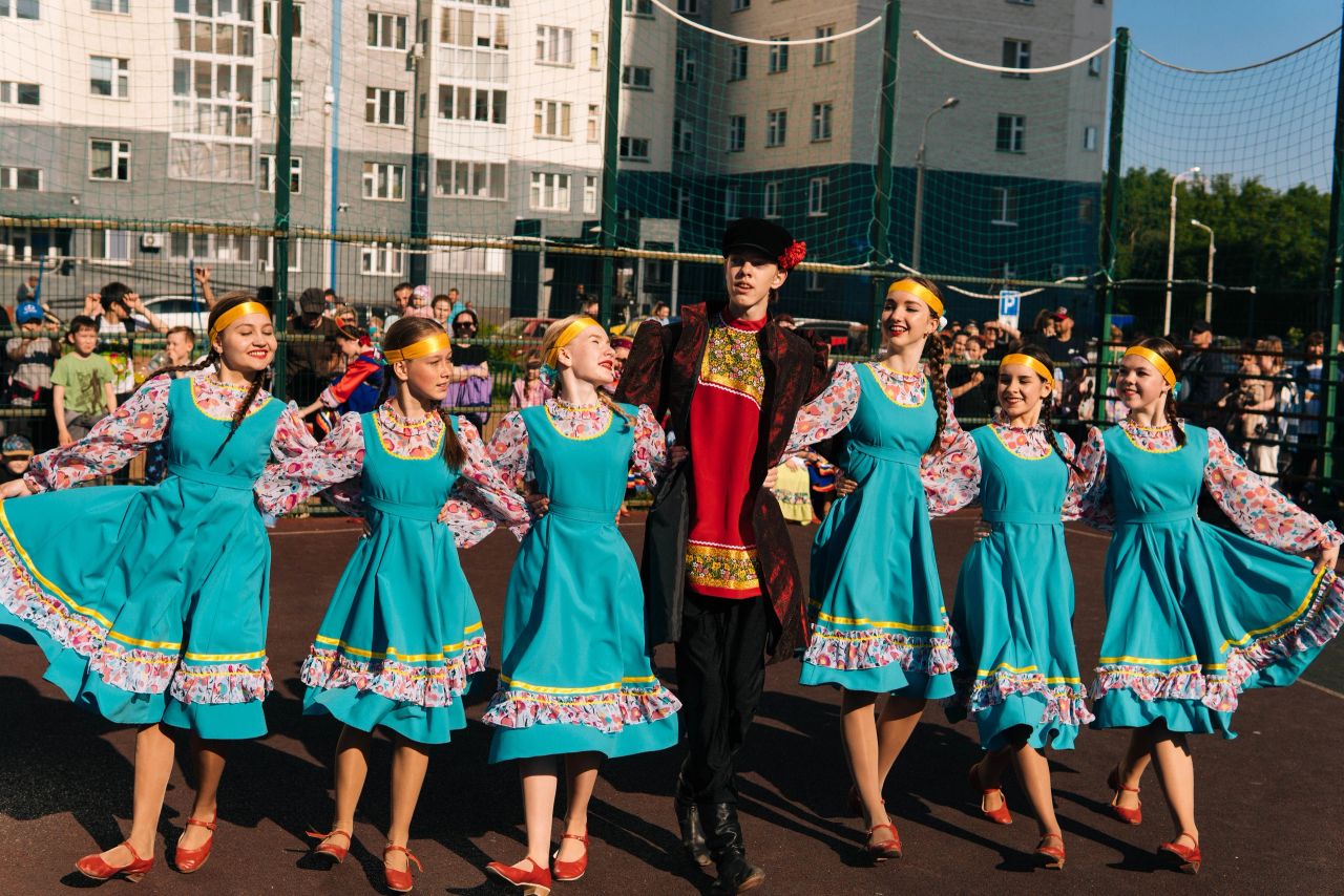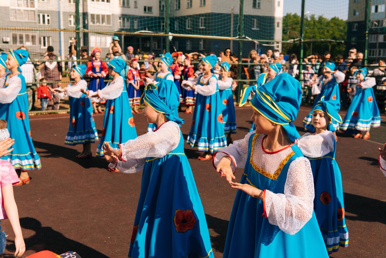1 июня 2022 года ансамбль национального танца "Энже" кафедры МХО поздравил жителей района "Подлесье" с Днем защиты детей.