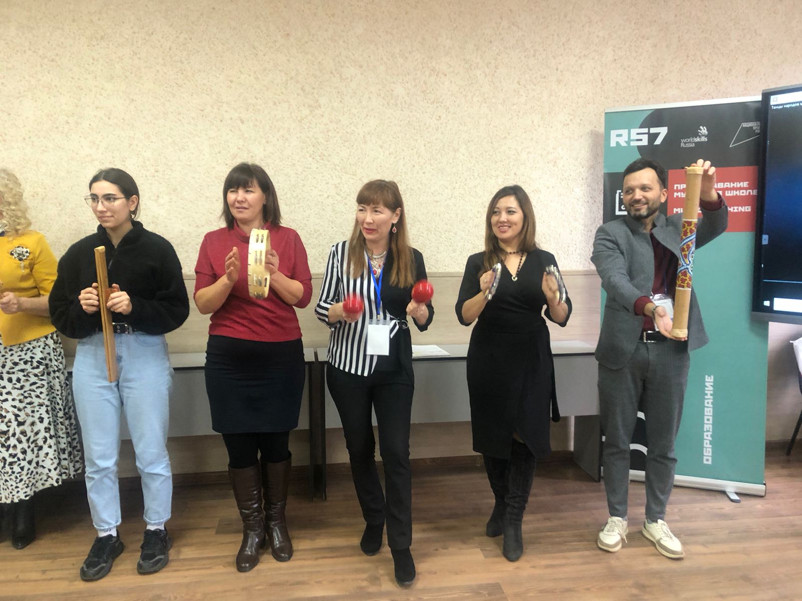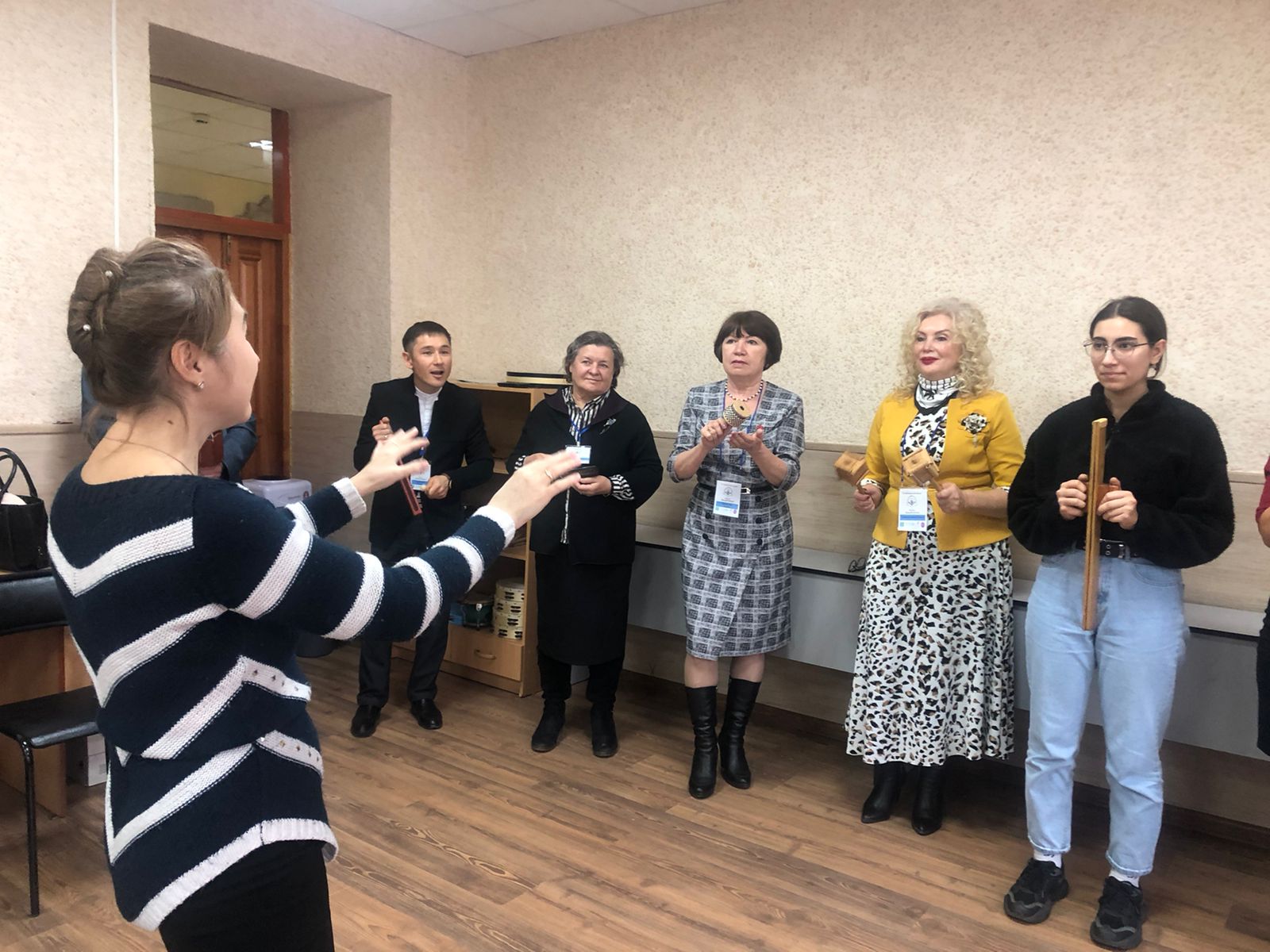 В ходе экскурсии заведующия кафедрой МХО, к.п.н., доцент Татьяна Ивановна Политаева проинформировала учителей о  процессе осуществления профессиональной подготовки будущих учителей музыки и педагогов-хореографов. Педагоги школ посетили корпус № 7, познакомились с преподавателями и студентами, посетили занятия по вокальной подготовке, хоровому дирижированию, ритмике, музыкально-комьютерным технологиям. Главный акцент был сделан на формирование профессиональных компетенций в мастерской World Skills. Студентка 5 курса Дарья Захарова и старший преподаватель Гульнара Раильевна Камалиева провели для присутствующих мастер-класс по ритмической импровизации с использованием детских шумовых инструментов, в котором смогли принять непосредственное участие и сами педагоги школ. Так же было рассказано об особенностях применения интерактивных дидактических игр на уроках музыки. Мастер-класс прошел в увлекательной форме.