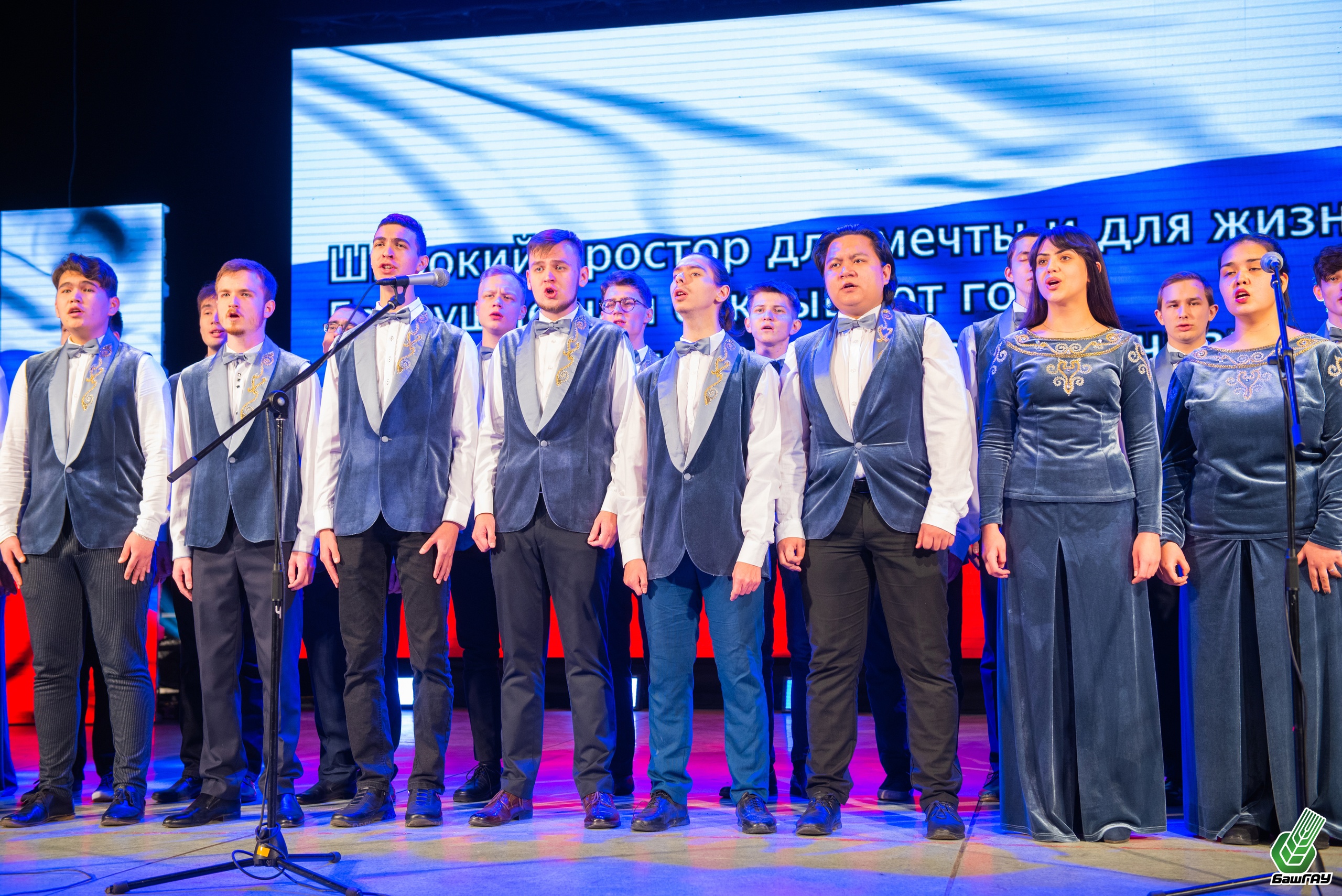 Акмуллинский хор под управлением доцента кафедры музыкального и хореографического образования Лейсян Наилевны Каримовой исполнил Гимн Российской Федерации и Гимн Республики Башкортостан (а капелла).