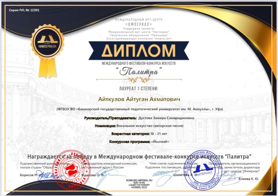 Студенты Акмуллинского университета стали победителями Международного фестиваля-конкурса искусств «Палитра»