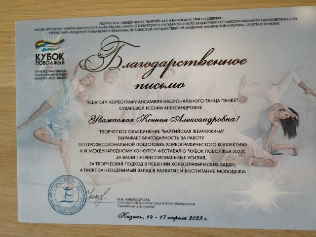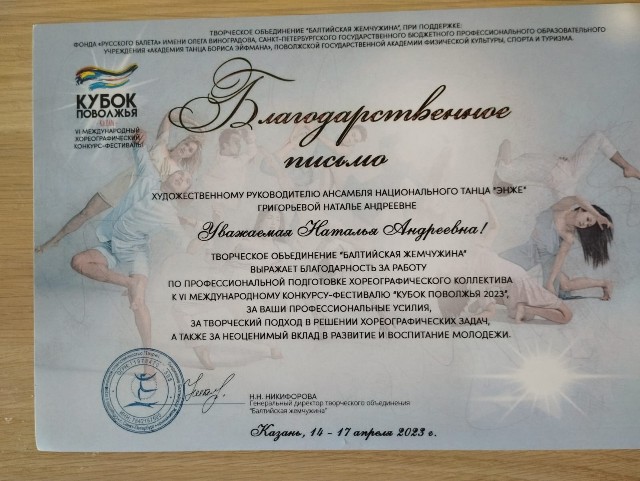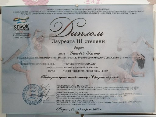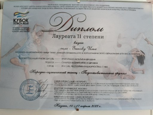 С 14 по 17 апреля в Казани прошел Международный хореографический конкурс "Кубок Поволжья", единственным коллективом представляющим на данном мероприятии нашу республику был Ансамбль народного танца "Энже" ЦРМХИ  кафедры Музыкального и хореографического образования Акмуллинского университета. В конкурсе принимали участие 54 коллектива со всей России: Москва, Казань, Сочи, Красноярск, Санкт-Петербург, Киров, Челябинск и другие города России. Профессиональное жюри, отличная организация, интересные хореографические номера, общение, красота Казани, все это составляющие данного конкурса. Конечно же наши звездочки привезли множество грамот и дипломов, показав профессионализм и творческое лицо коллектива, во главе со своими хореографами.