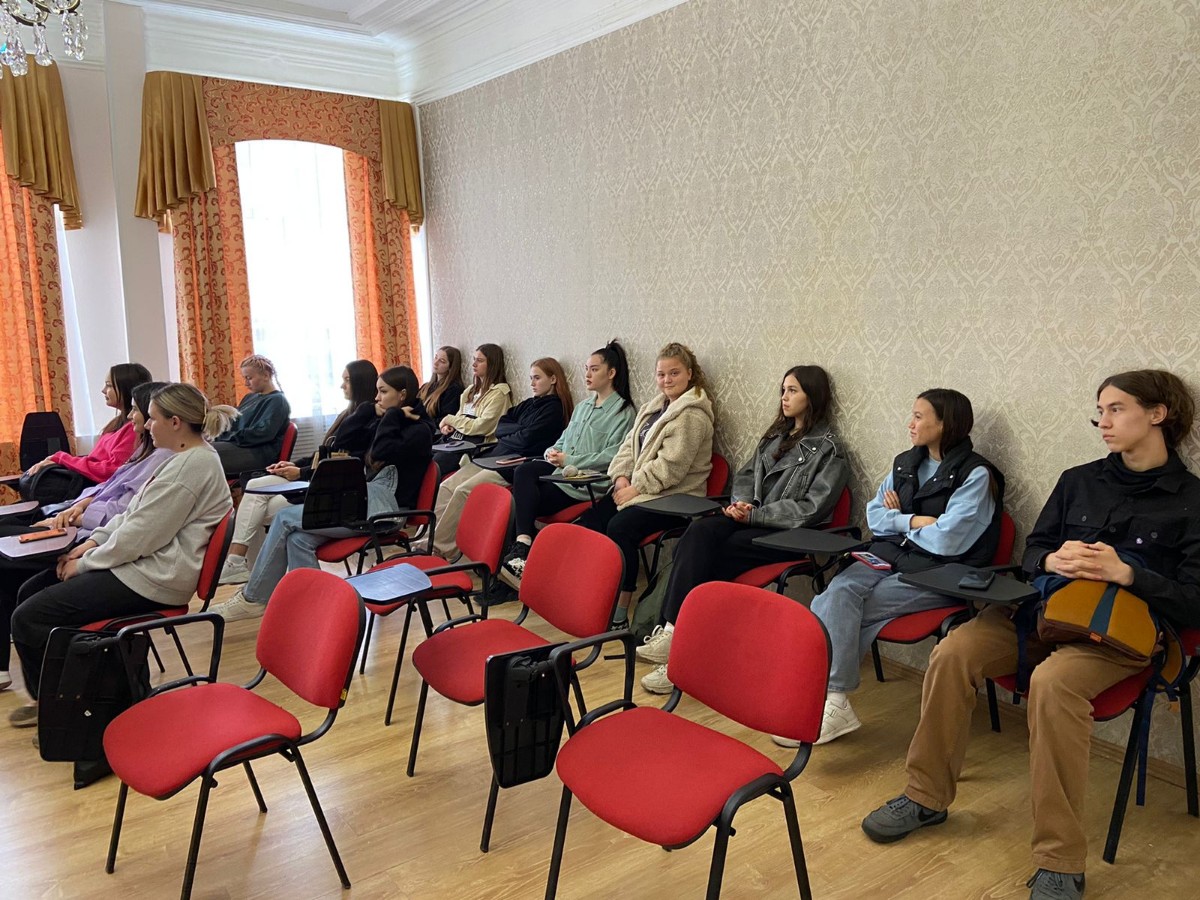 25 сентября 2023 г. в рамках тематического плана занятий "Разговоры о важном" состоялась лекция на тему «Там, где Россия» со студентами 1 курса направления подготовки "Педагогическое образование", профиля "Художественное образование (хореография)" .