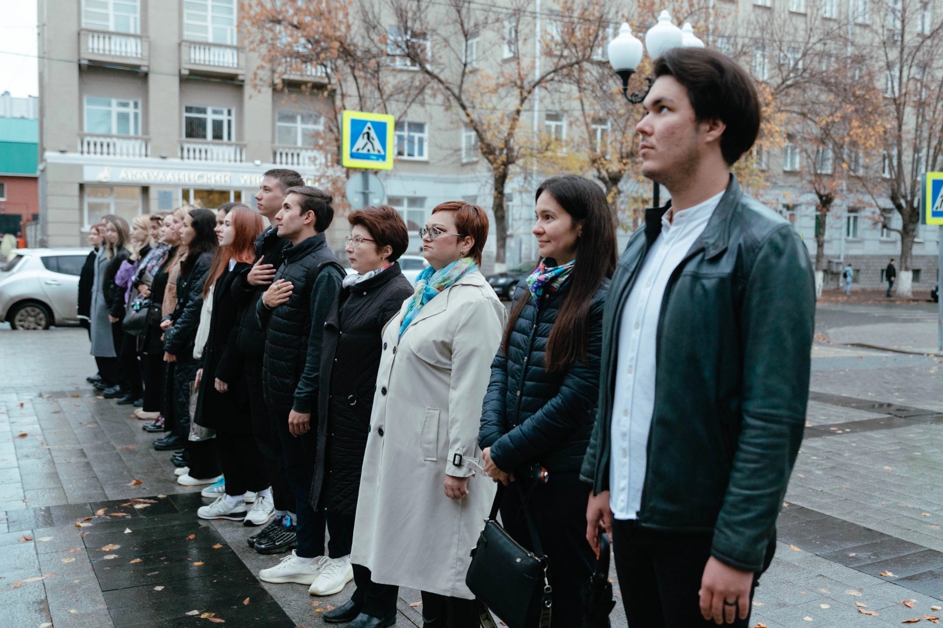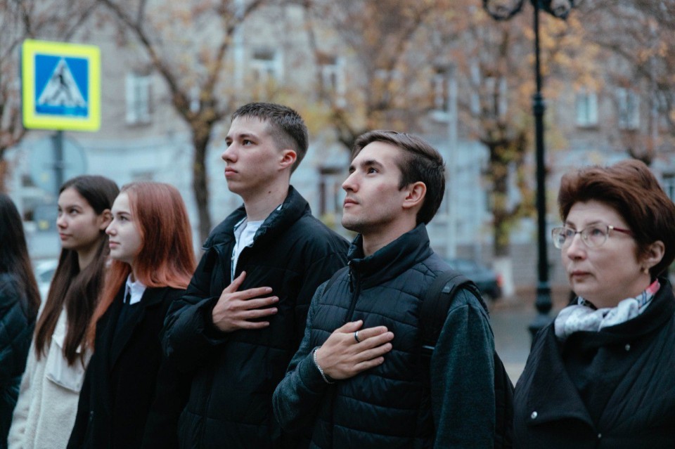 Студенты 1 курса кафедры музыкального и хореографического образования приняли участие в церемонии поднятия государственных флагов