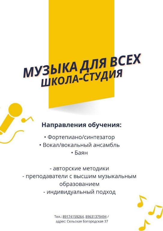 Обучение в школе-студии дает возможность научиться играть на музыкальных инструментах, развить свои вокальные способности, познакомиться с миром музыки, стать частью творческого коллектива.