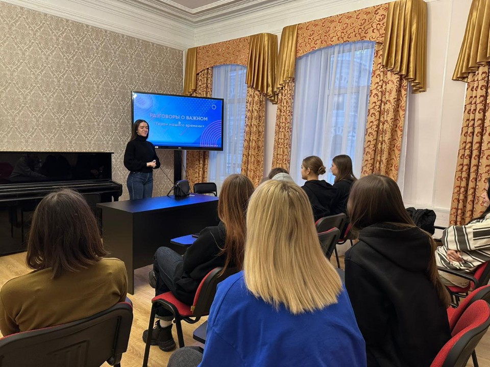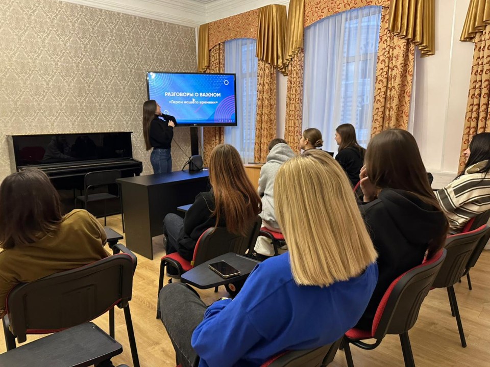 18 декабря в рамках тематического плана занятий "Разговоры о важном" состоялась воспитательная беседа со студентами 1 курса профиля "Художественное образование (хореография)" на тему "Герои нашего времени" под руководством куратора старшего преподавателя Муфтахутдиновой Ирины Александровны.