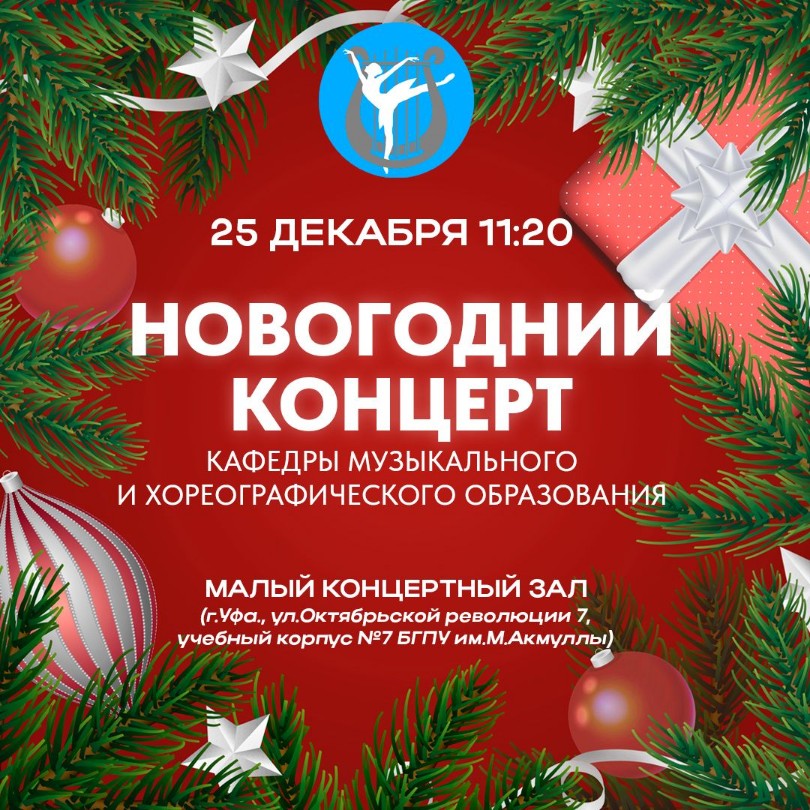 Кафедра музыкального и хореографического образования приглашает на Новогодний концерт 25 декабря 2023 года!