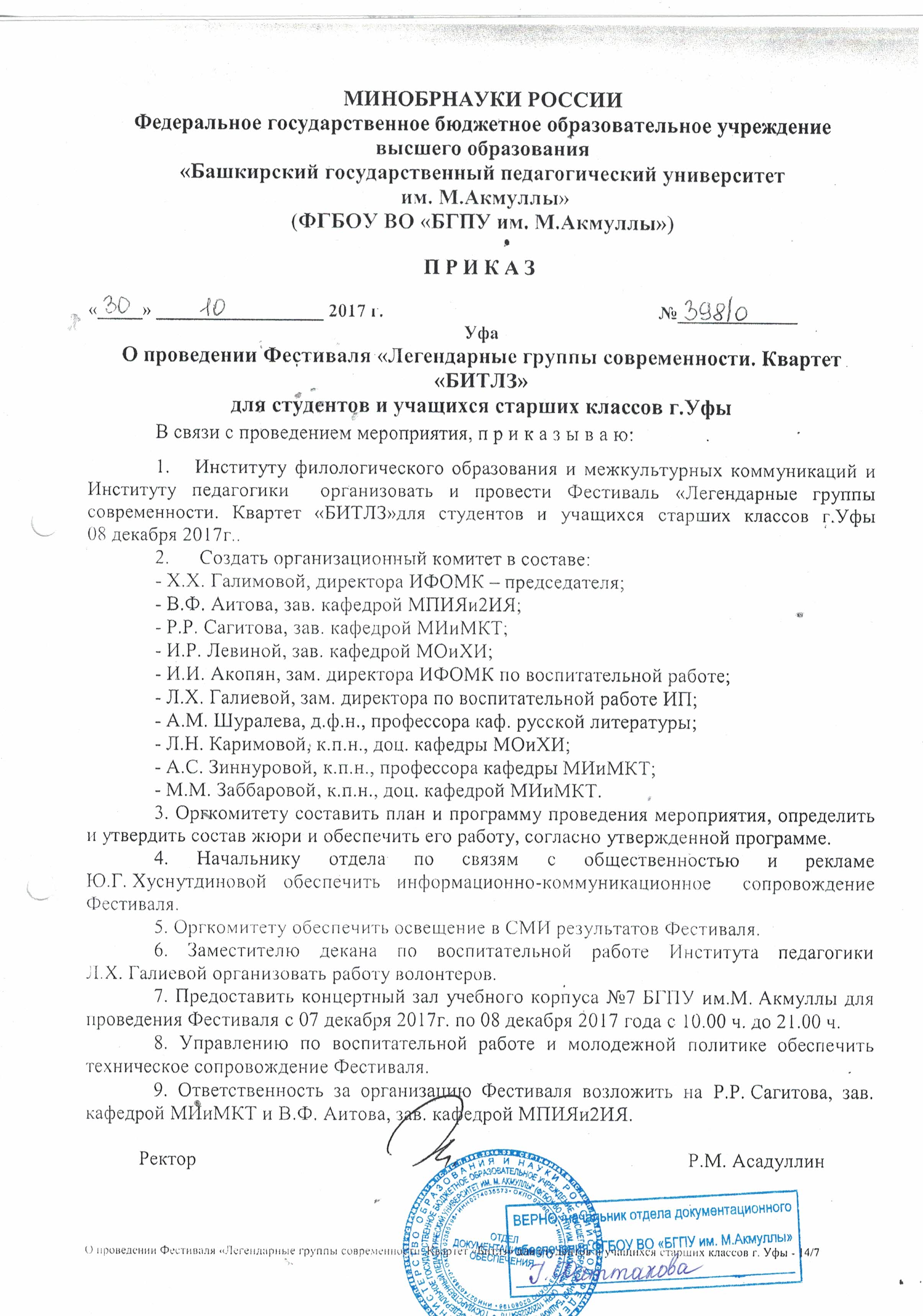 Открытие Фестиваля – 8 декабря 2017 года в 18.00 час. в концертном зале колледжа БГПУ  им. М. Акмуллы