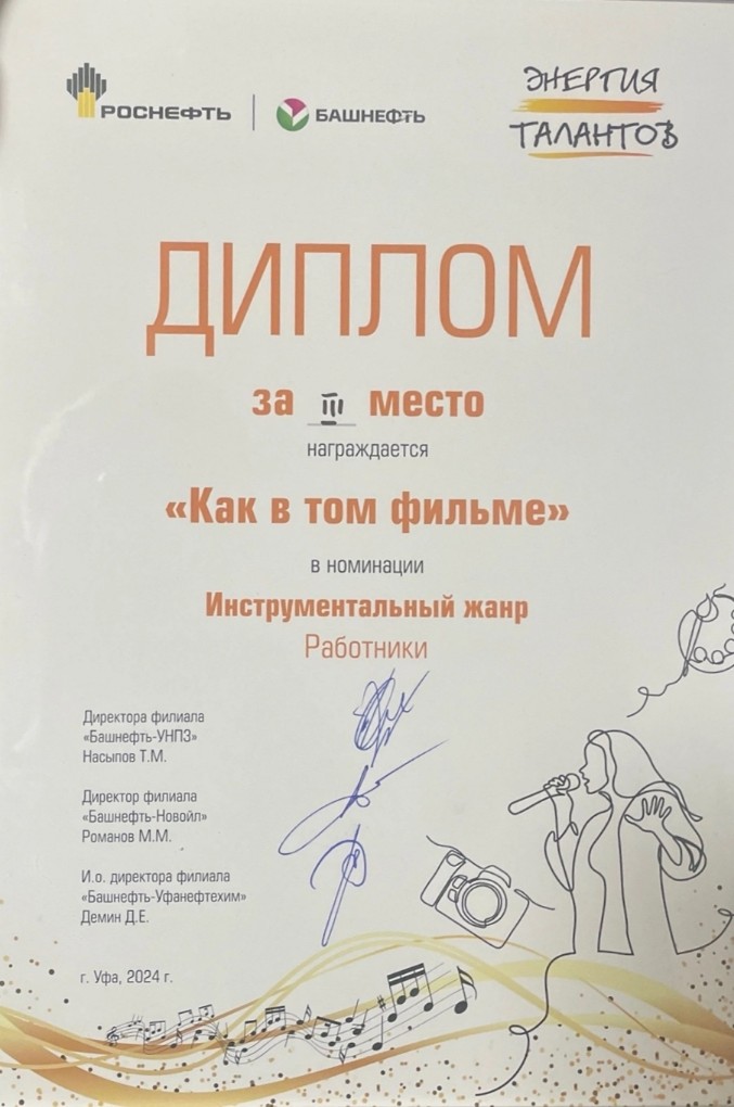 В марте 2024 года прошел Творческий фестиваль "Энергия талантов" г. Уфа. Организатором фестиваля  является ПАО "Нефтяная компания "Роснефть" - крупная российская  нефтегазовая.