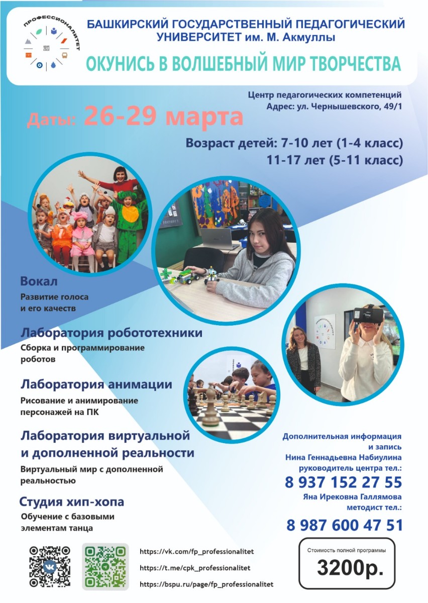 Занятия в Акмуллинском университете помогут школьникам развить академические и творческие способности, выбрать будущую профессию и интересно провести время.