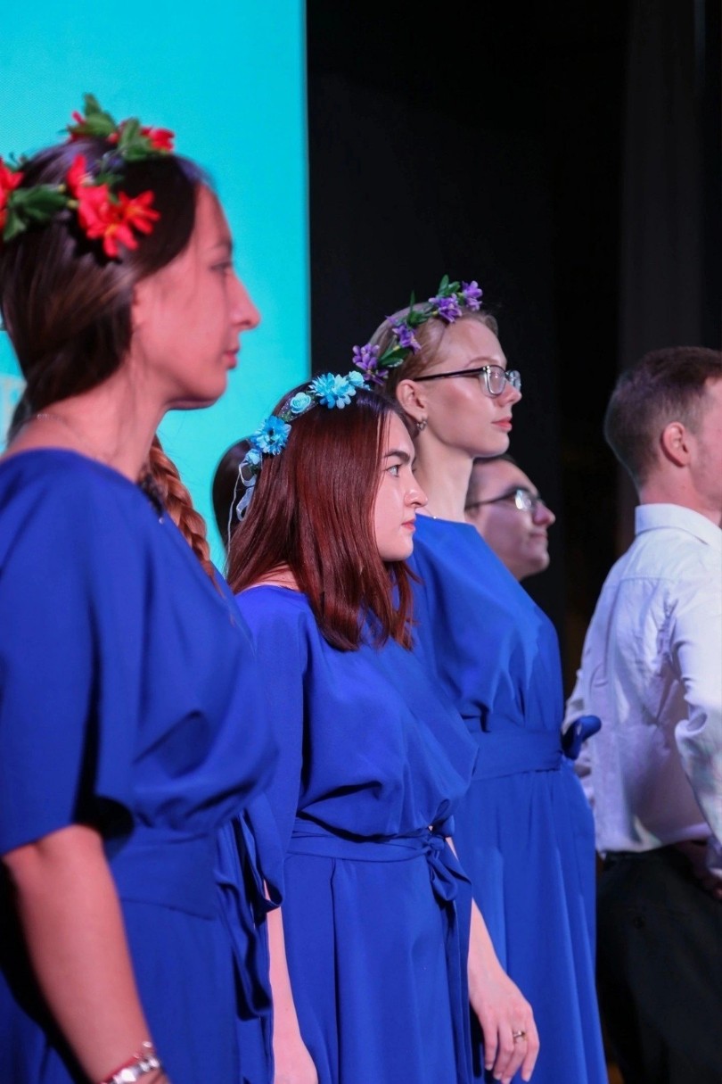 Хор вместе с солисткой и большим детским хореографическим коллективом исполнил произведение "Матушка - святая Русь"