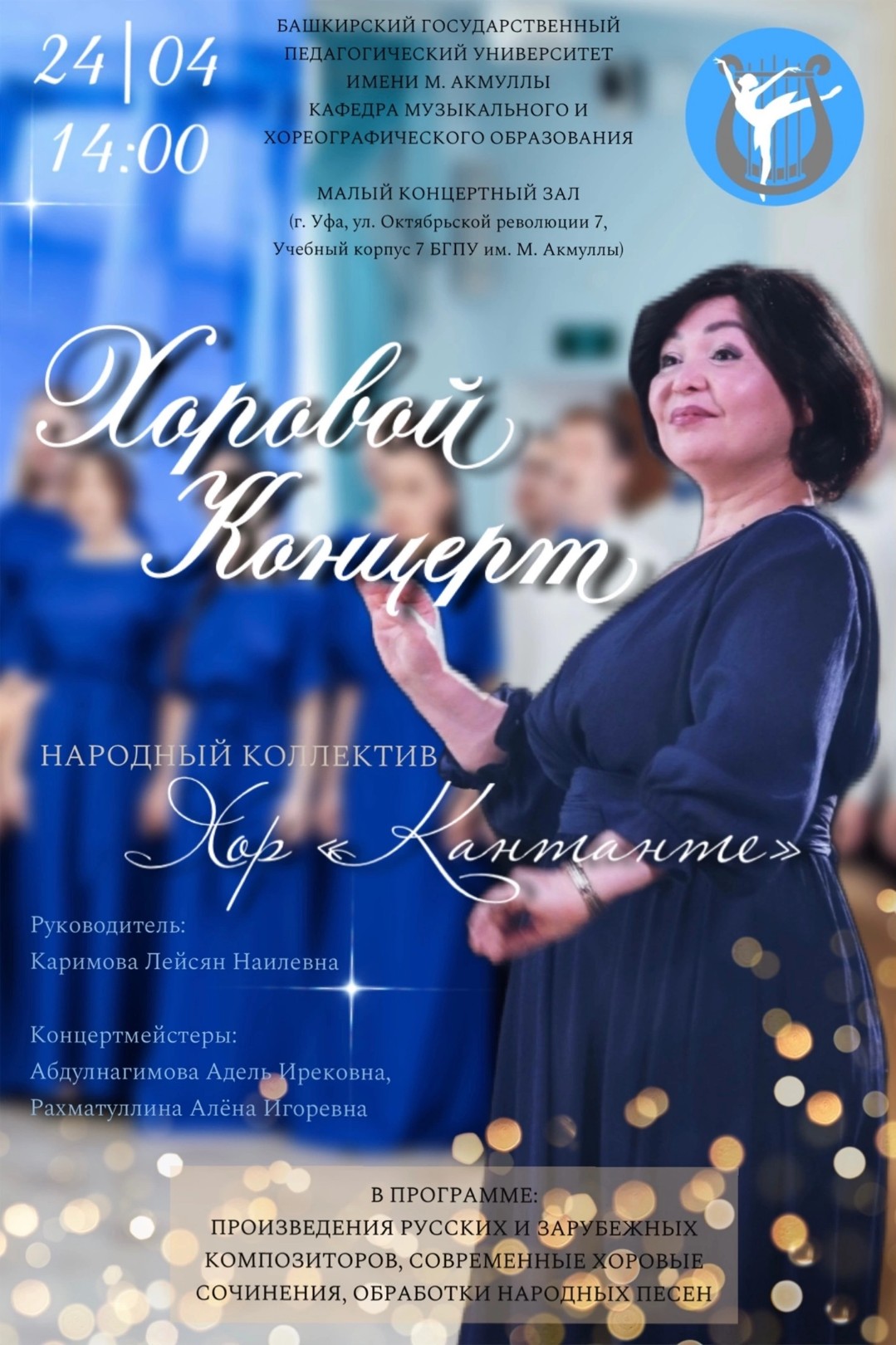 Кафедра музыкального и хореографического образования  приглашает на хоровой концерт народного коллектива «Кантанте» Акмуллинского университета.