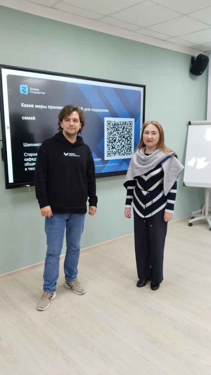 Вниманию участников проекта была представлена лекция старшего преподавателя кафедры политологии и связей с общественностью УУНиТ Шаяхметова Арсена Маратовича на тему «Какие меры принимаются в Российской Федерации для поддержки семей».