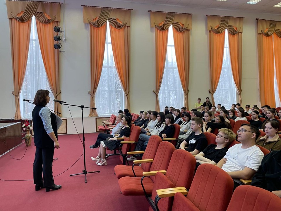 В процессе беседы студенты кафедры исполнили вокальные и инструментальные номера, ответили на вопросы школьников и преподавателей гимназии о поступлении в университет.