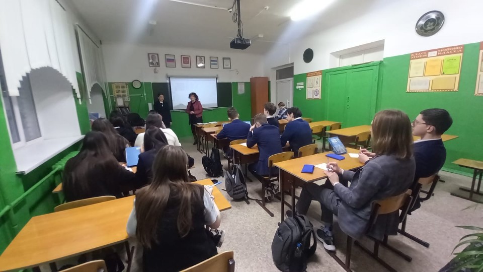 Школьники 11 А класса с интересом восприняли информацию о направлениях подготовки кафедры, задавали интересующие их вопросы о поступлении в вуз, заполнили анкеты будущих абитуриентов. Профориентационное мероприятие прошло в доверительной, теплой атмосфере.