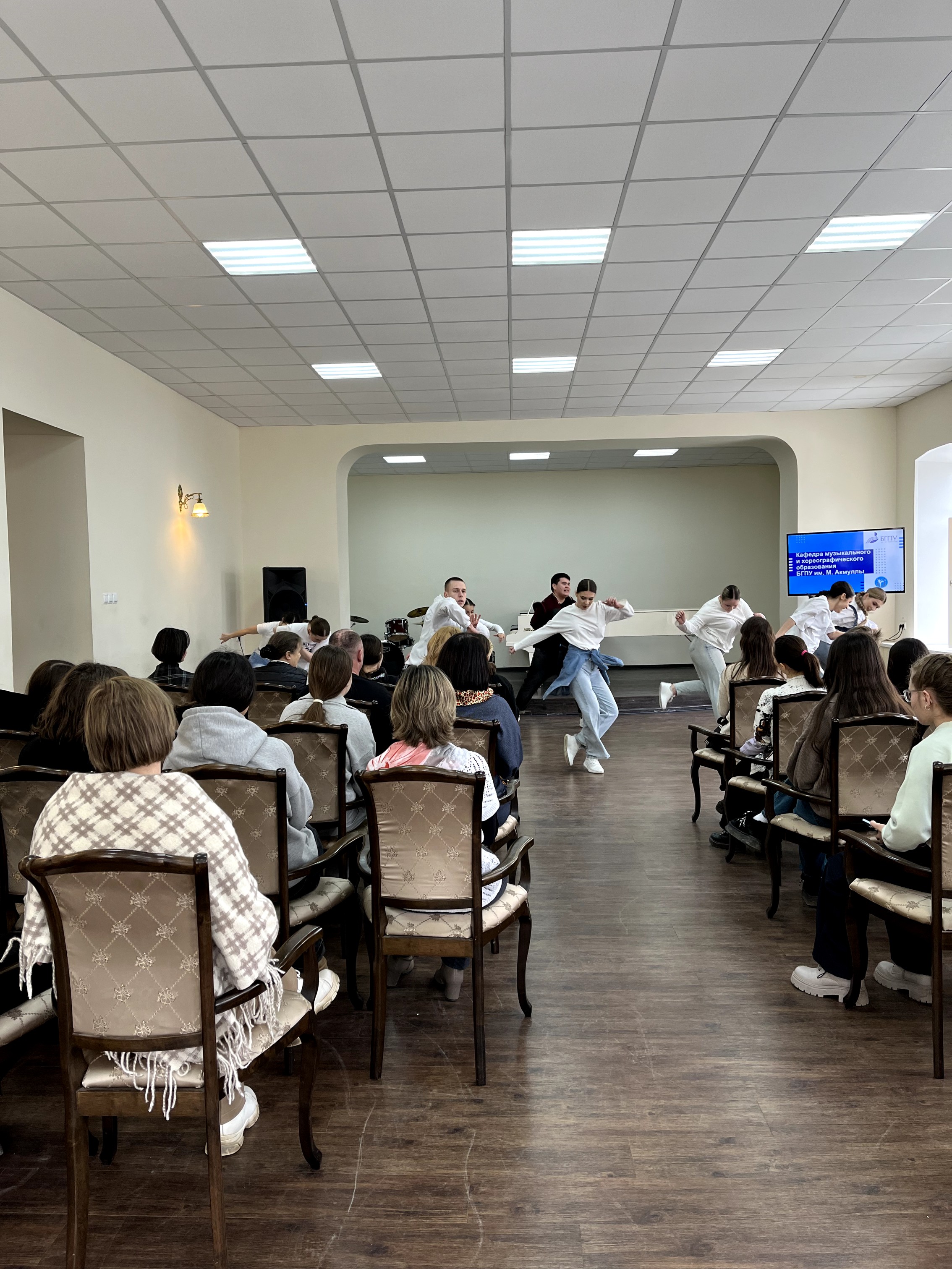 В процессе экскурсии учащиеся смогли  послушать Народный хор Кантанте БГПУ им.М.Акмуллы под руководством к.п.н, доцента Каримовой Л. Н., увидеть процесс работы над вокальным произведением в классе доцента Яппаровой Д.М., процесс работы над освоением приёмов народного танца, современных танцевальных техник на занятии у Салминой К. Р и Салмина А. И. и увидеть комбинации студенческого танцевального объединения «Движение».