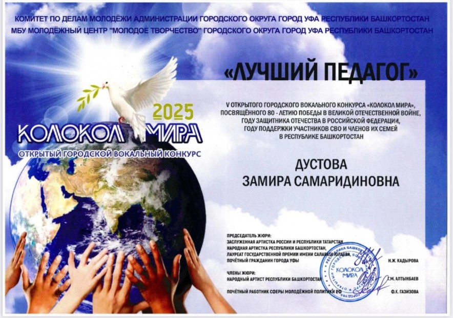 Дустова Замира – диплом «Лучший педагог»,