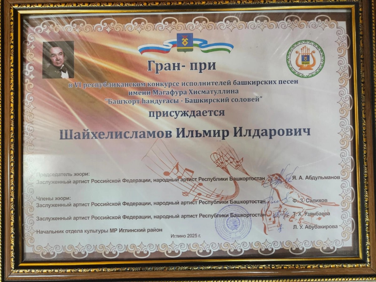 Магистрант кафедры музыкального и хореографического образования Института педагогики БГПУ имени М. Акмуллы - обладатель гран-при Республиканского конкурса исполнителей башкирских песен имени Магафура Хисматуллина «Башкирский соловей».