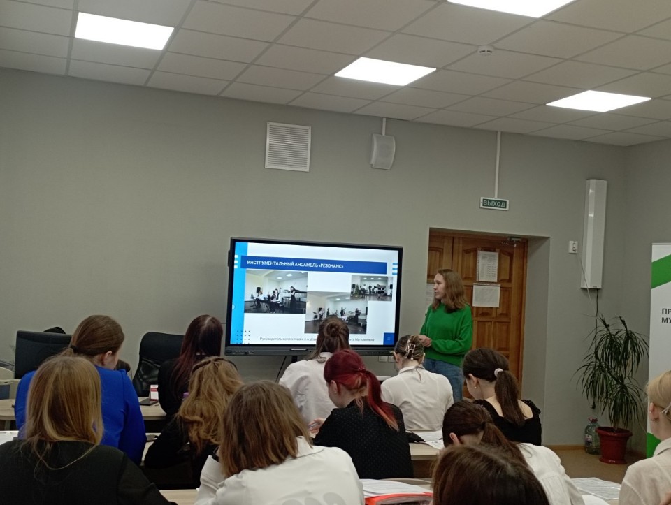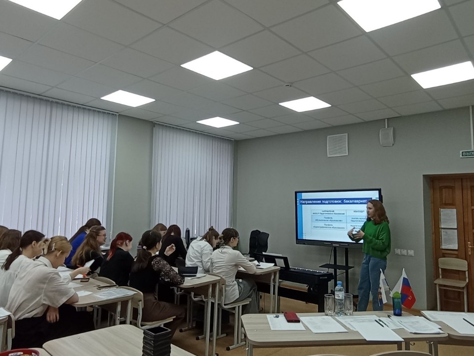 25 апреля старший преподаватель кафедры музыкального и хореографического образования Рахматуллина А. И. провела профориентационное мероприятие с выпускниками направления «Музыкальное образование» ГАПОУ СО «Свердловский областной педагогический колледж».