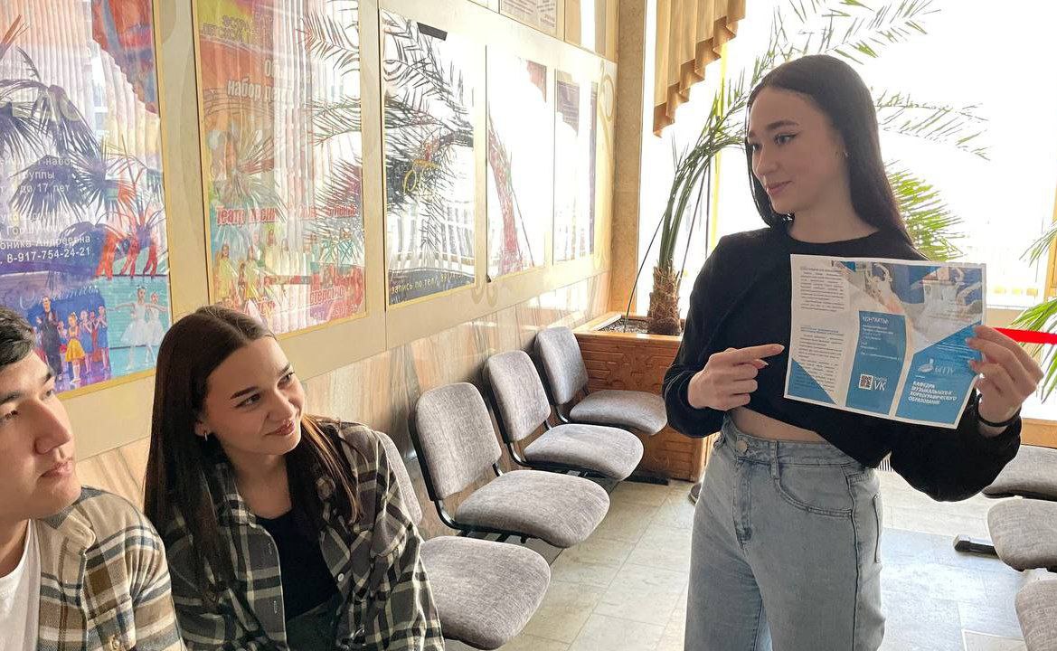25 апреля в Народном ансамбле танца "Айтуган" (г. Уфа) прошла профориентационная встреча, которая вызвала большой интерес среди участников ансамбля. Студенты 2 курса профиля "Хореографическое образование (хореография) БГПУ им. М. АкмуллыГилязиева Камилла и Махмутова Элина под руководством заведующей кафедрой музыкального и хореографического образования Т.И. Политаевой рассказали об образовательной программе "Хореографическое образование", поделились своим опытом поступления, а также обсудили перспективы трудоустройства будущих педагогов-хореографов.