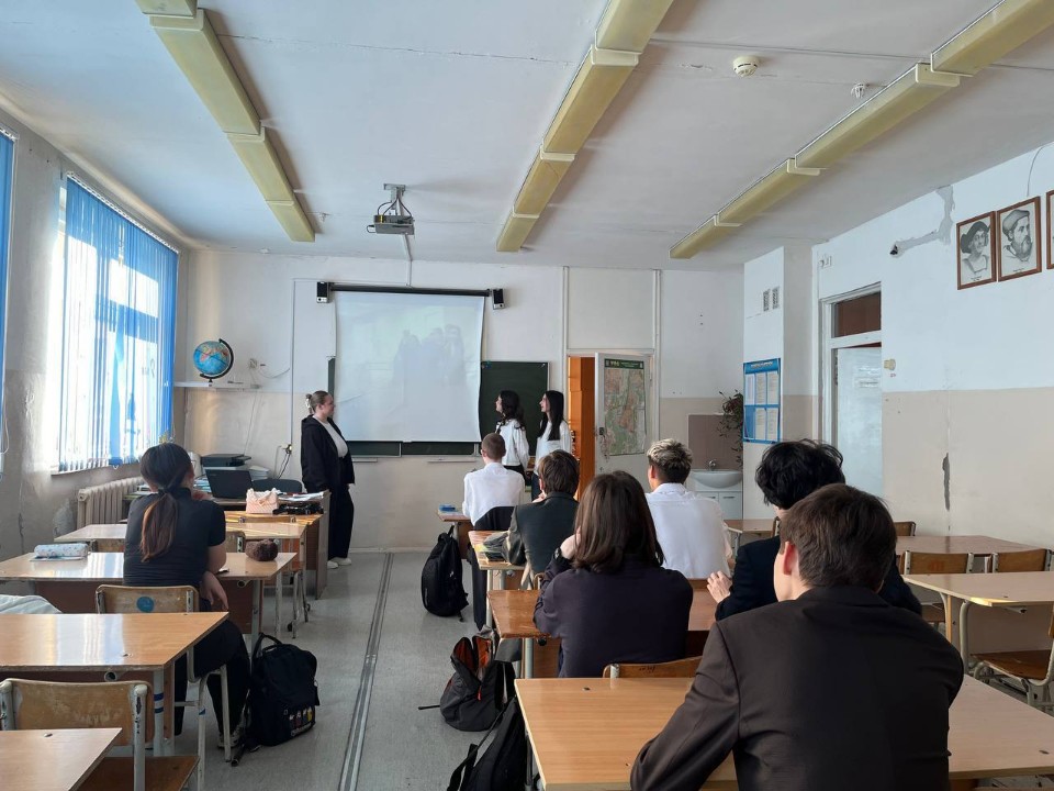 Студенты кафедры музыкального и хореографического образования БГПУ им. М. Акмуллы : Суфиярова Лия, Рощина Виктория , Данилова Анна провели профориентационную встречу с учащимися 10-11 классов МАОУ СОШ № 141 города Уфы 22 апреля 2025 года.