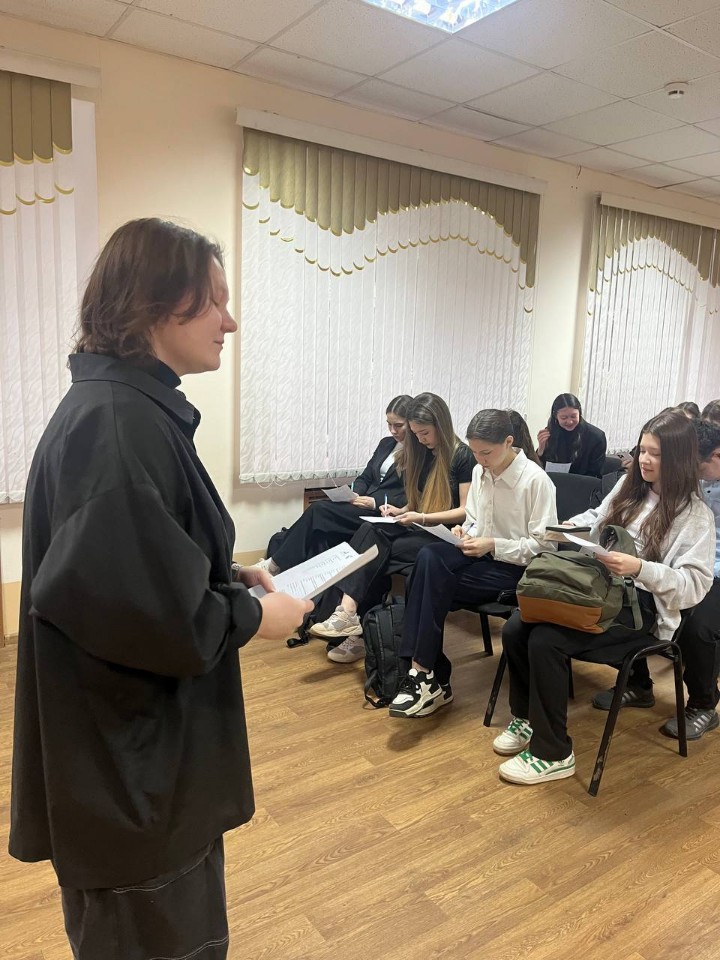 Обучающимся старших классов было рассказано об Акмуллинском университет и кафедре музыкального и хореографического образования, об особенностях профессии учителя музыки, педагога-музыканта в системе дополнительного образования, а также об особенностях приемной компании 2025 года.