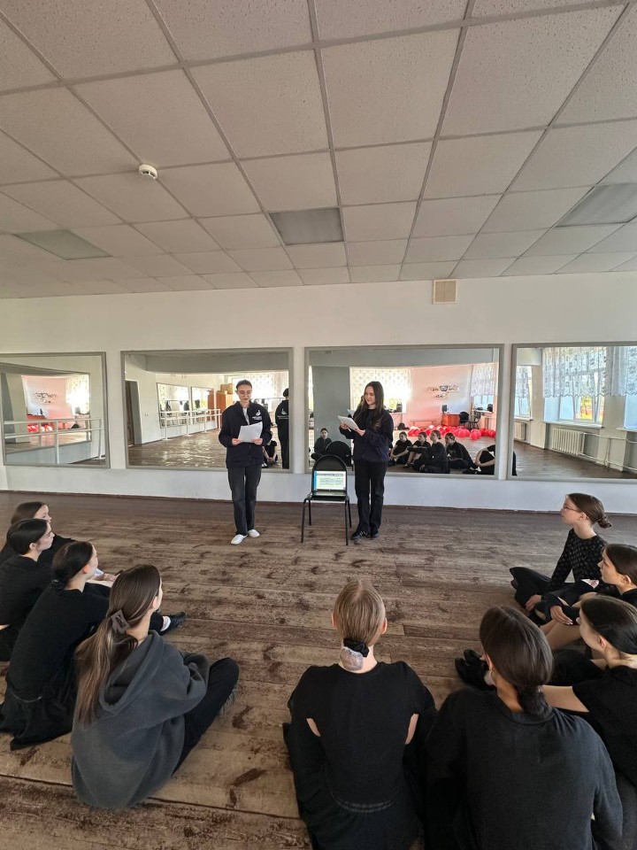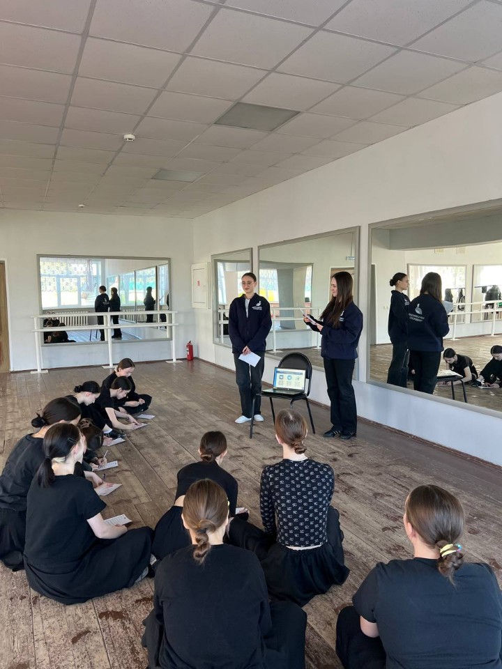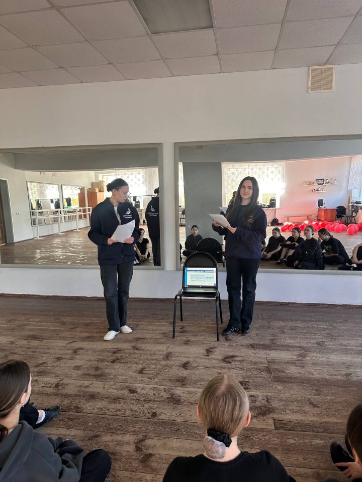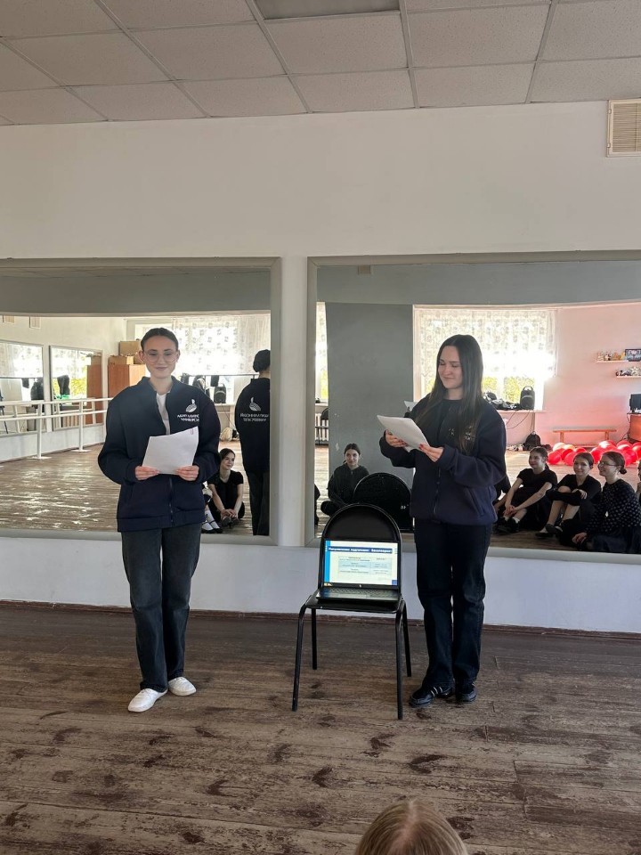 29 апреля 2025 года студенты 1 курса БГПУ им. М. Акмуллы Распутняя Виолетта, Фаррахова Ильнара, совместно с преподавателем кафедры музыкального и хореографического образования К.Р. Салминой, провели профориентационное мероприятие для 12 участников образцового ансамбля народного танца «Йолдыз» (село Шаран Республика Башкортостан).