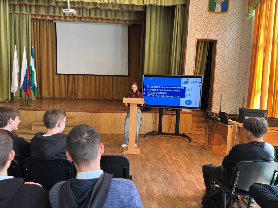 12 мая 2025 года студента 1 курса БГПУ им. М. Акмуллы Плотникова Елизавета совместно с преподавателем кафедры музыкального и хореографического образования К.Р. Салминой провела профориентационное мероприятие для студентов 2-3 курсов в Башкирском колледже сварочно-монтажного и промышленного производства.