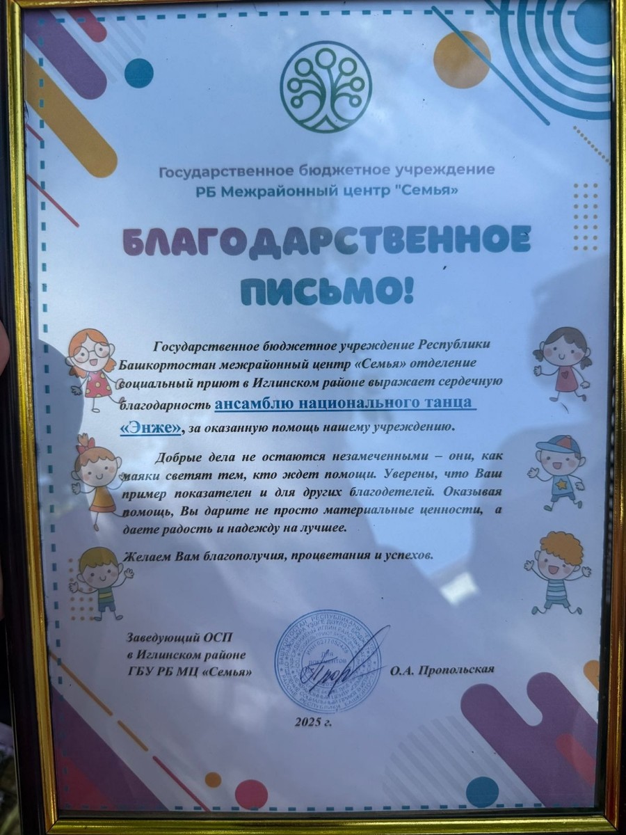 1 июня солисты Ансамбля Национального Танца "ЭНЖЕ" выступили на благотворительном концерте в межрайонном центре "Семья" Иглинского района Республики Башкортостан. Мероприятие, имевшее важную социальную значимость, было организовано для поддержки детей и подростков.