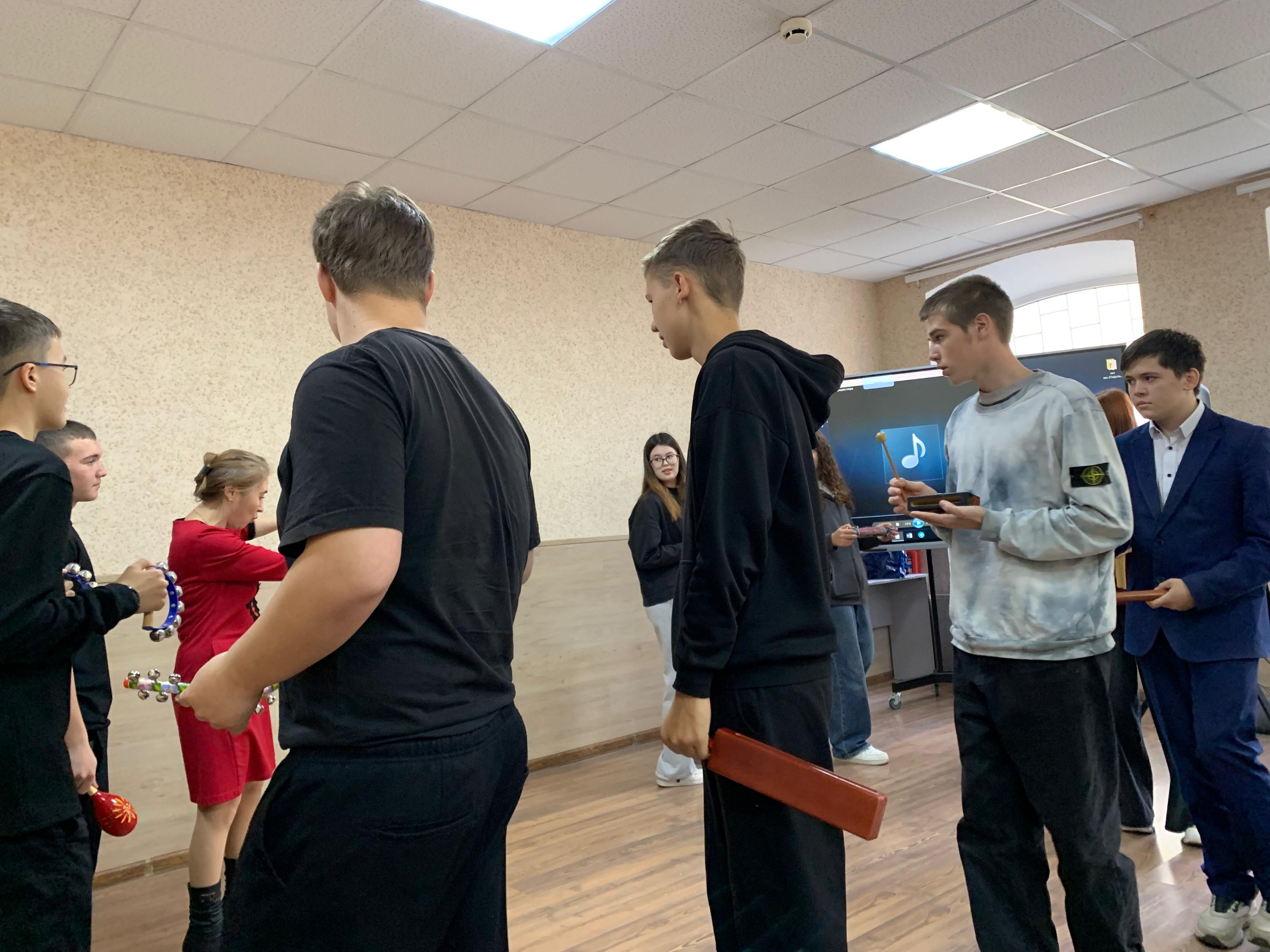 Обучающиеся познакомились с детскими шумовыми инструментами, узнали историю их создания, освоили исполнительские приемы звукоизвлечения, изучили элементы боди перкуссии и выполнили перестроения с хореографическими движениями.