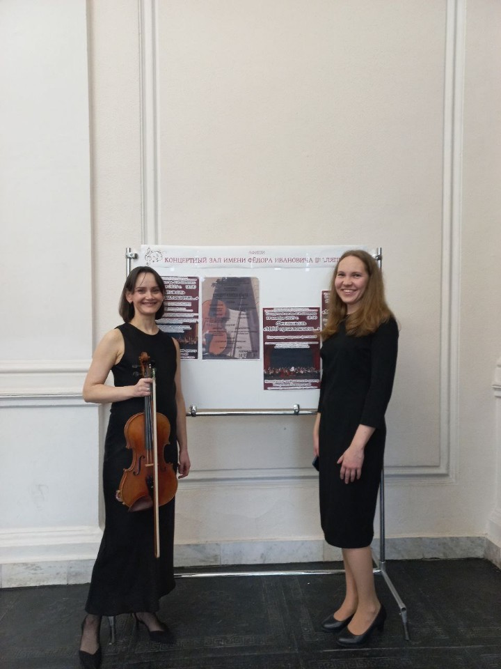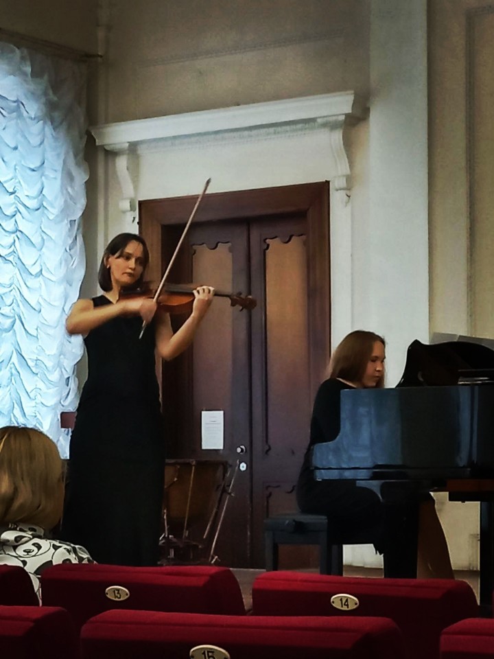 Юлия Ежова исполнила "Сарабанду" и "Жигу" из Сюиты №5 для альта соло и «Скерцо» из сонаты И. Брамса, где концертмейстером выступила Алёна Рахматуллина.