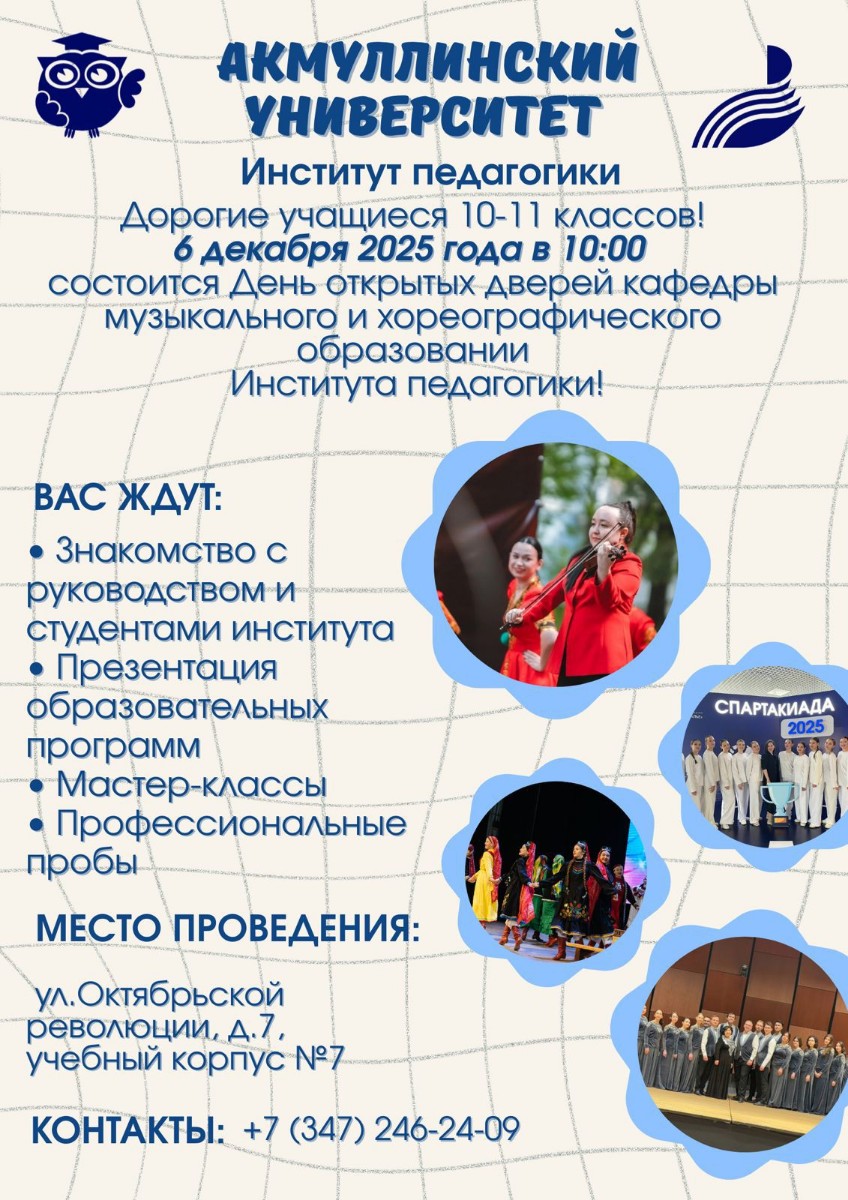 Кафедра музыкального и хореографического образования приглашает на День открытых дверей!