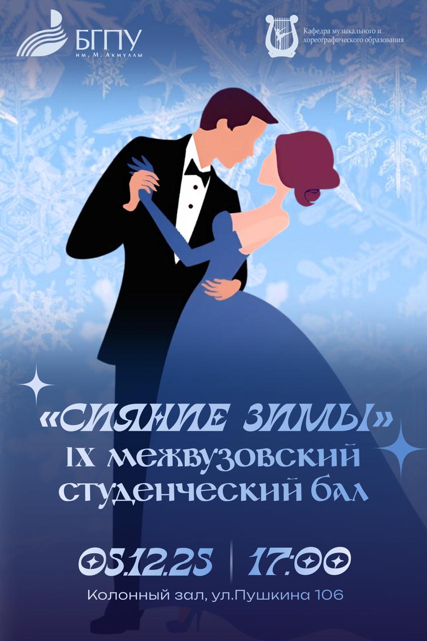 5 декабря 2025 года Колонный зал Министерства сельского хозяйства РБ  распахнет свои двери для студентов и преподавателей Уфы. Здесь пройдет одно из самых красивых культурных мероприятий - IX Межвузовский студенческий бал «Сияние зимы»!